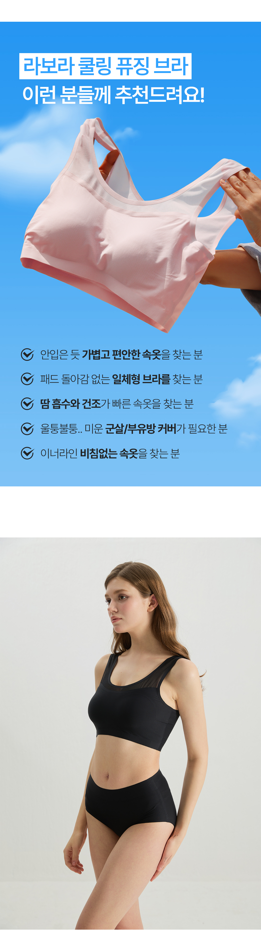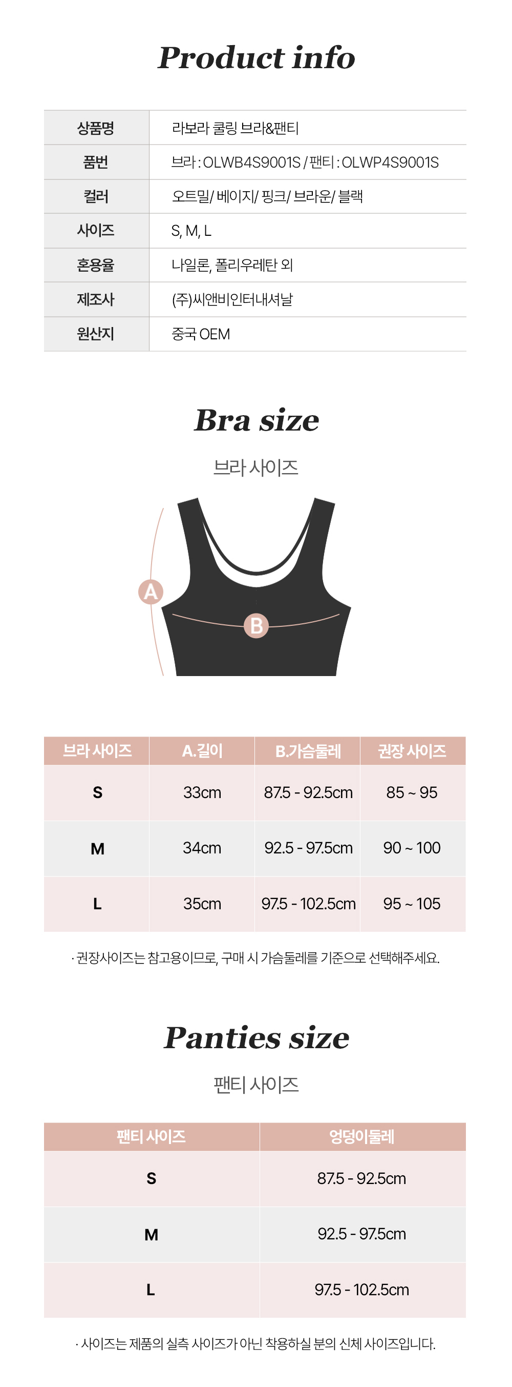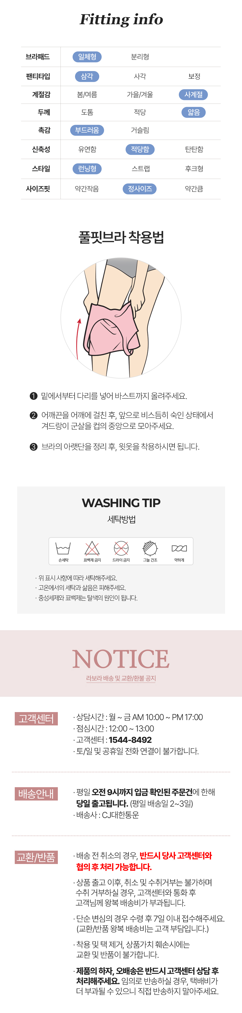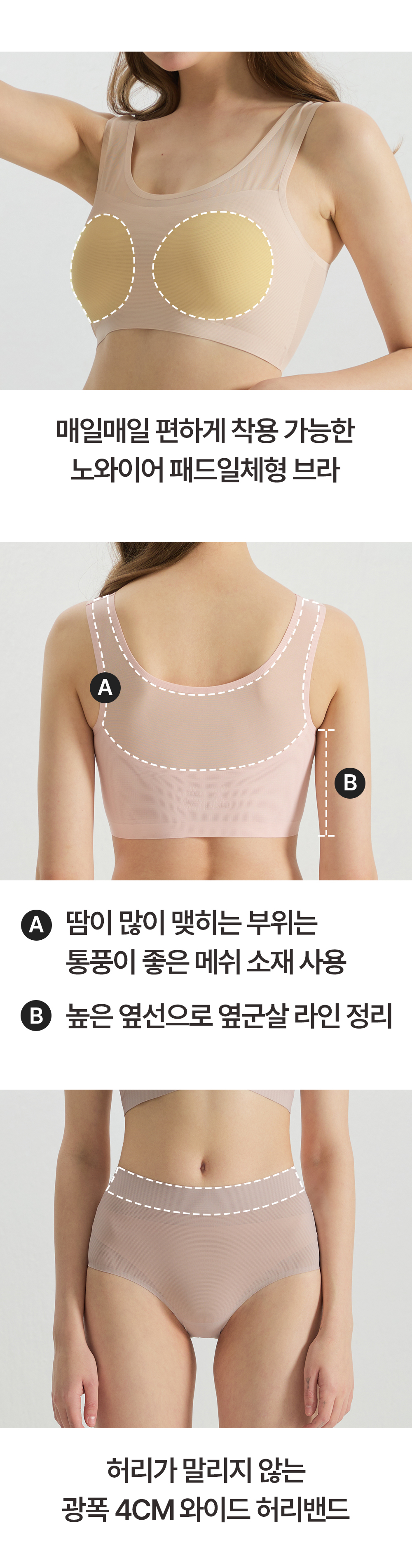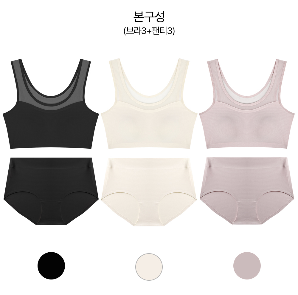 (15%+10%쿠폰/브라3+팬티3) 라보라 패드일체형 노라인 누디 심리스 풀핏 브라팬티 6종세트 (OT+BR+BK)