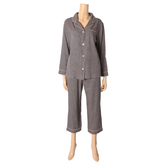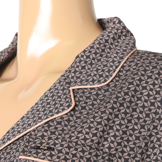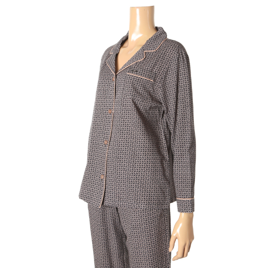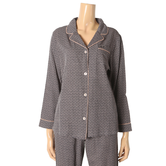 잔잔한 기하학 스몰패턴 프린트이 모던한 여성파자마 세트입니다.