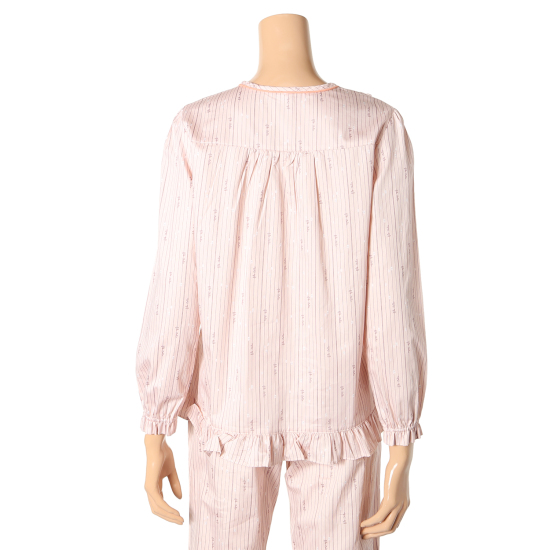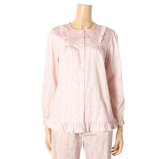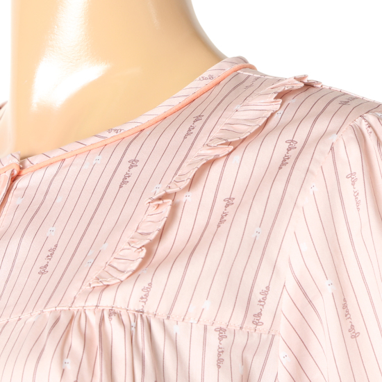 상의는 카라가 없는 스타일로,상단과 하단의 프릴 장식이 귀엽고 여성스러운 느낌을 줍니다.