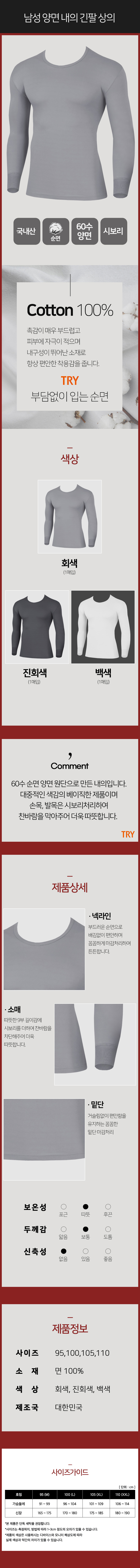 남자면내복상의 순면 60수 양면 겨울 보온내의 긴팔 할아버지 국산
