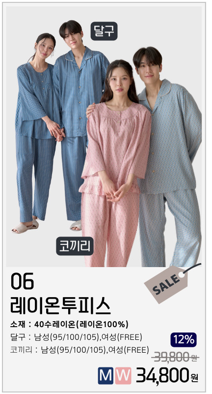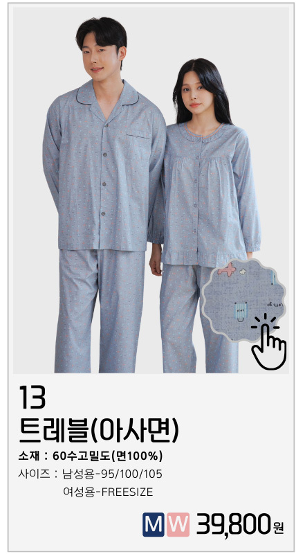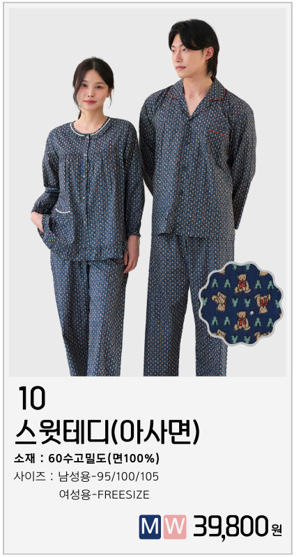 신상 순면 홈웨어 실내복 파자마 세트 커플잠옷