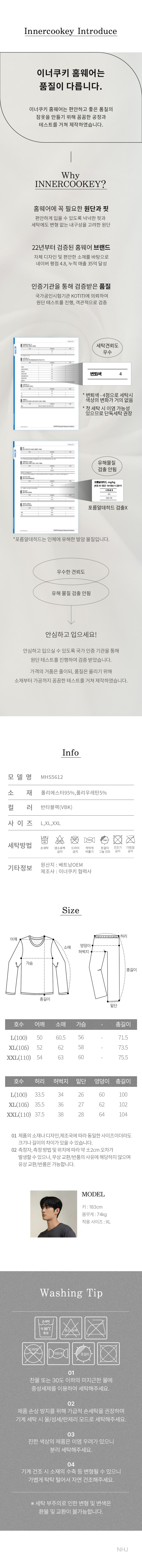 MHS5612 이너쿠키 슬림 기모 남자 실내복 홈웨어 이지웨어