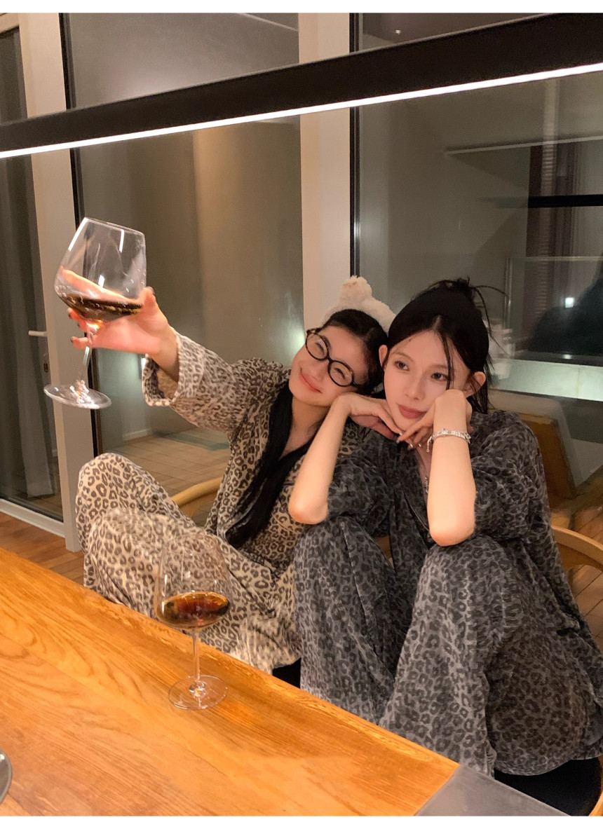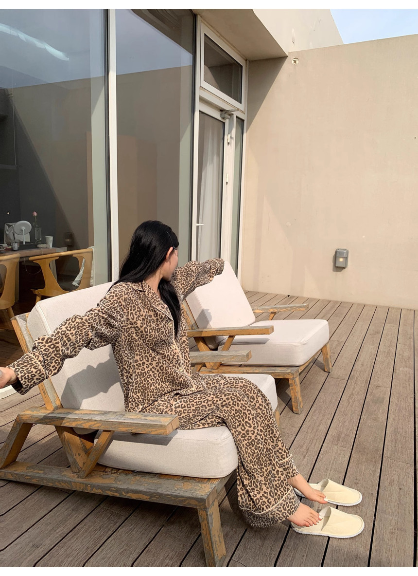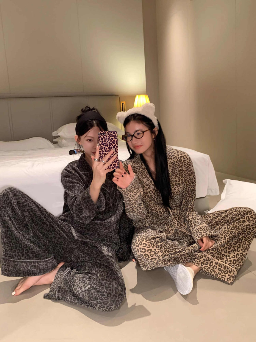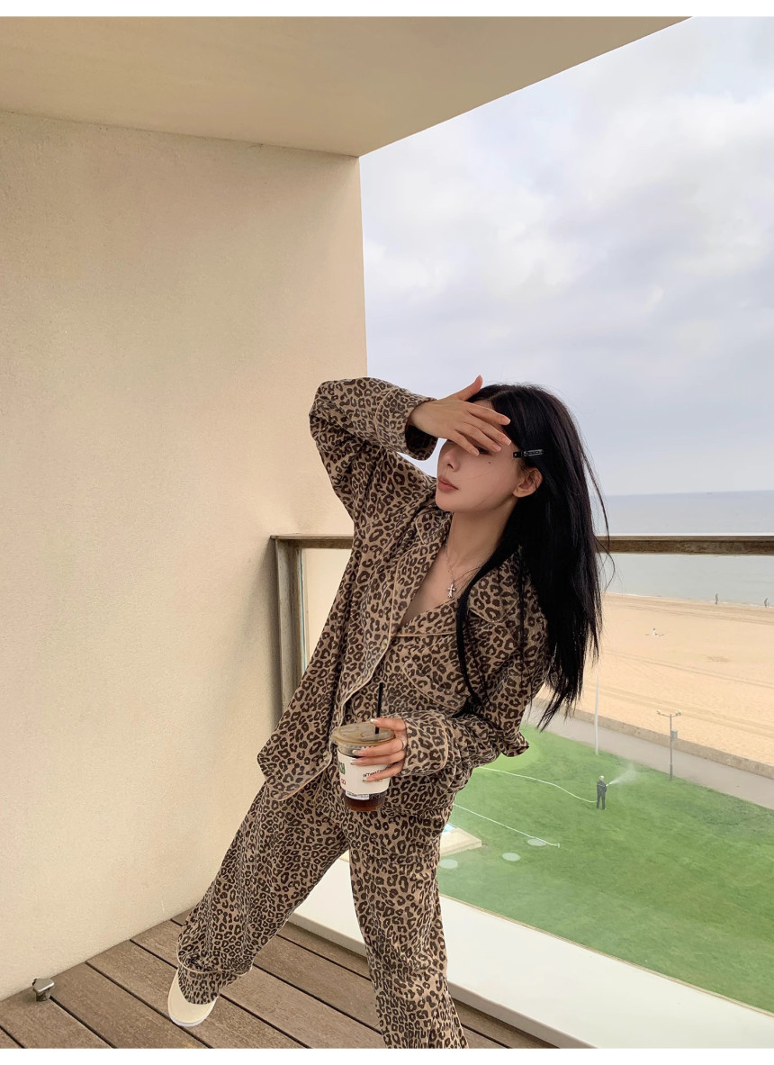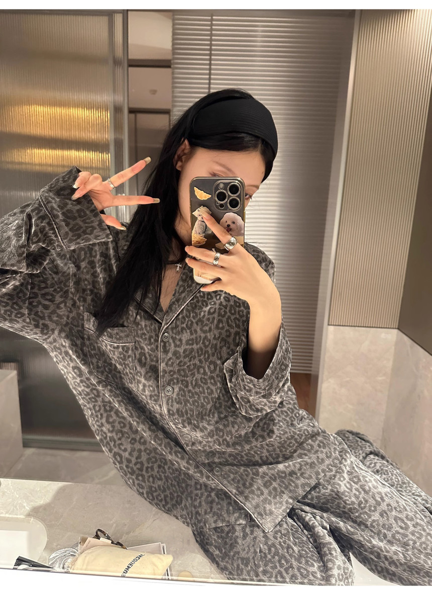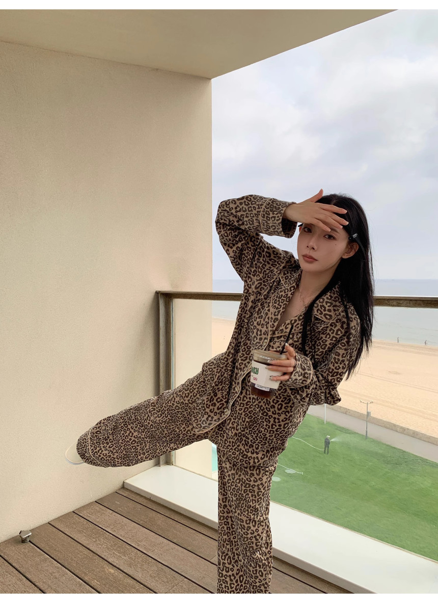 레오파드 수면 파자마 잠옷 호피 여성 기모 벨벳 홈웨어 가을 겨울 빅사이