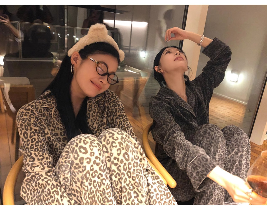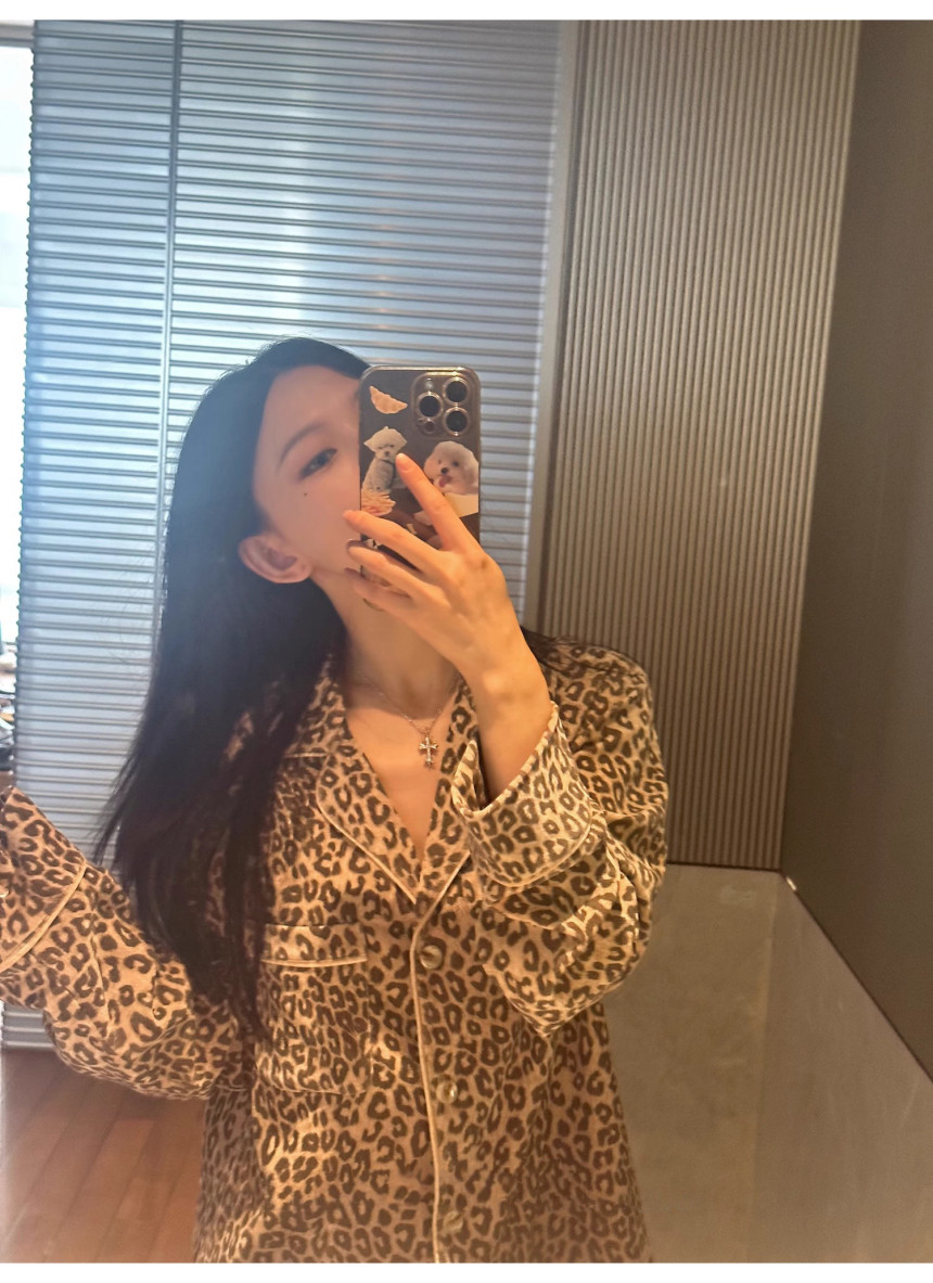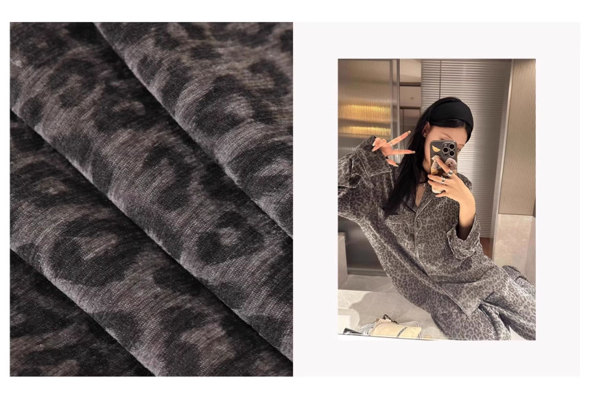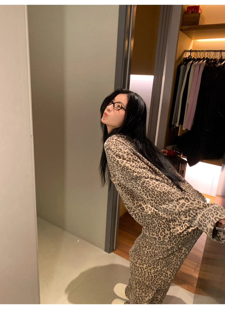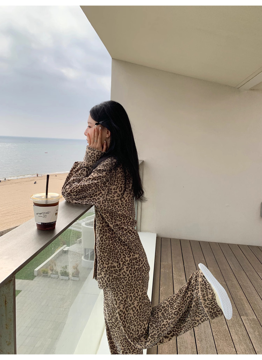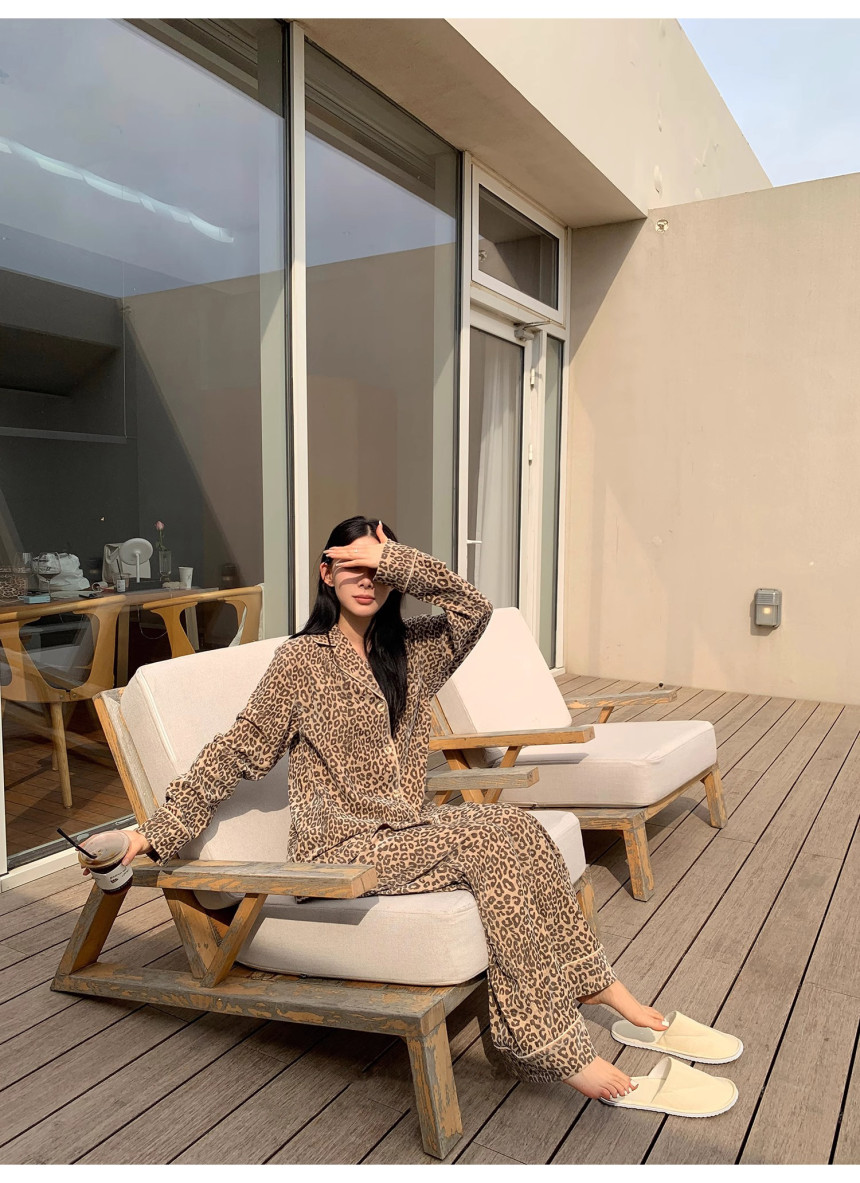 레오파드 수면 파자마 잠옷 호피 여성 기모 벨벳 홈웨어 가을 겨울 빅사이