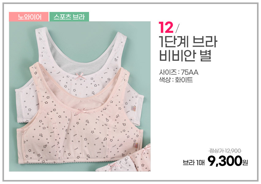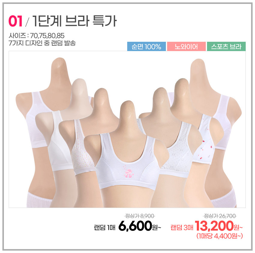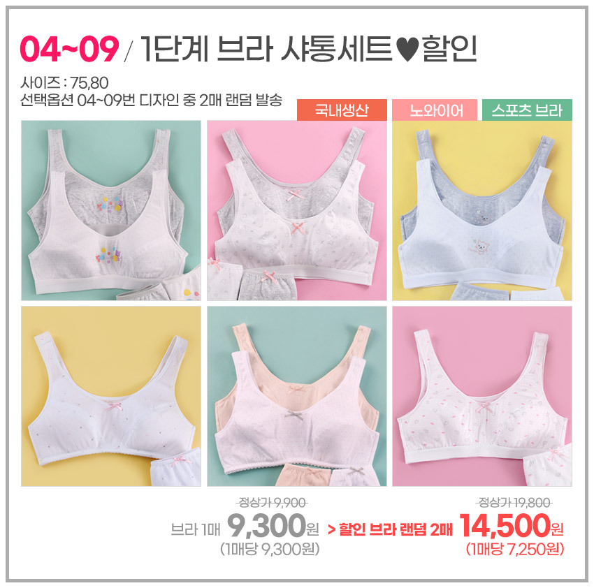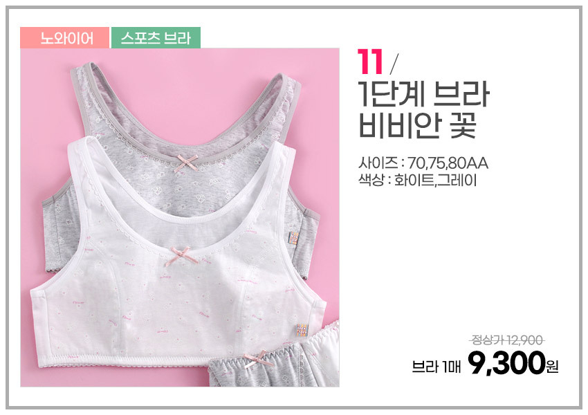 (15+10%쿠폰) 주니어브라 (1+1+1) 1 2 3 단계별 순면 주니어 속옷 런닝 아동 초등학생 노와이어
