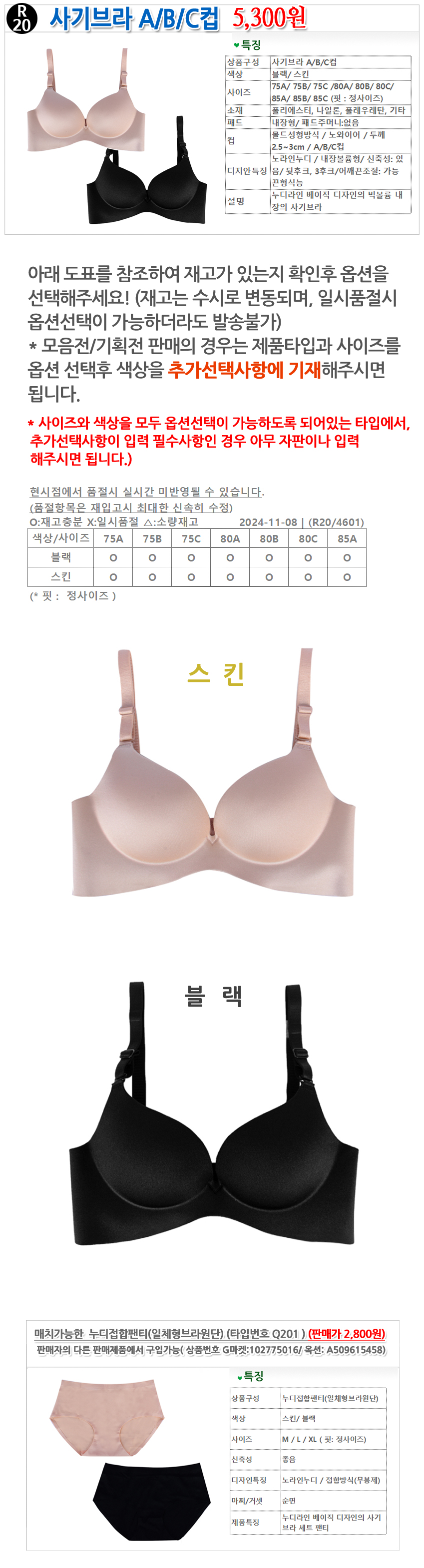 양떼구름 레이스 왕뽕사기브라 (R19) 푸쉬업 몰드컵 3cm내장패드 사기브라 누디라인 A/B/C컵 (R20) 빅볼륨 2.5-3.5cm 내장패드