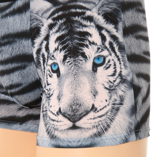 폴리스판 호피나염에 호랑이 얼굴이 원포인트 되어 있는 트렌디한 느낌의 드로즈 제품입니다.신축성이 좋아 착용 후 활동하기 편안하고 터치가 부드러워 착용감이 좋습니다.