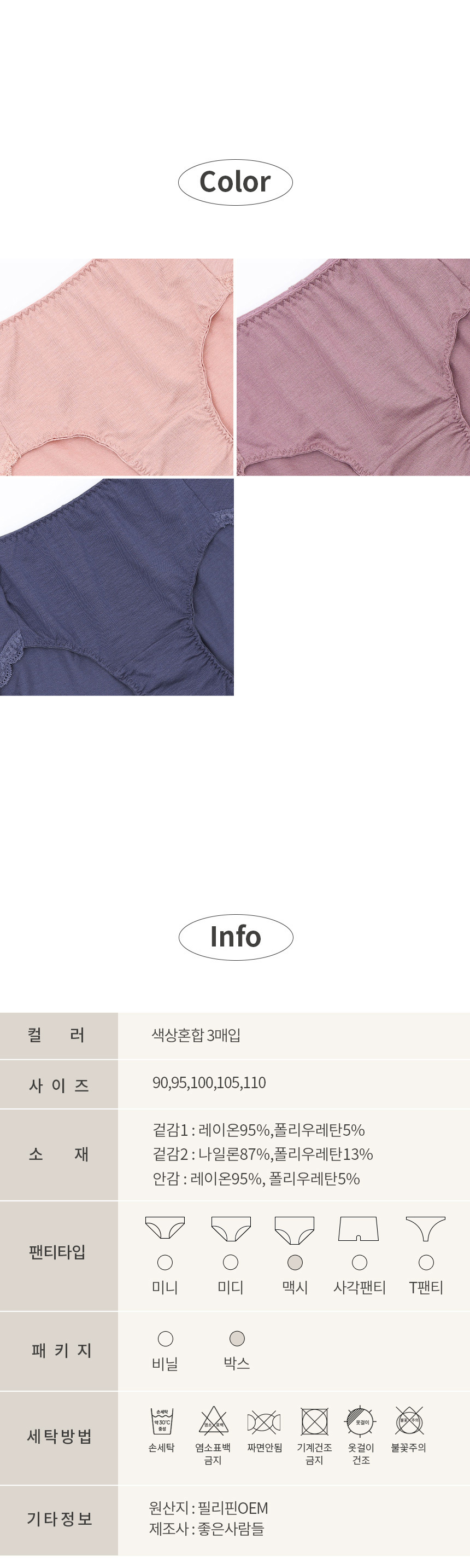 여성삼각팬티 신축성있는 미디 요일 팬티 5매입 세트