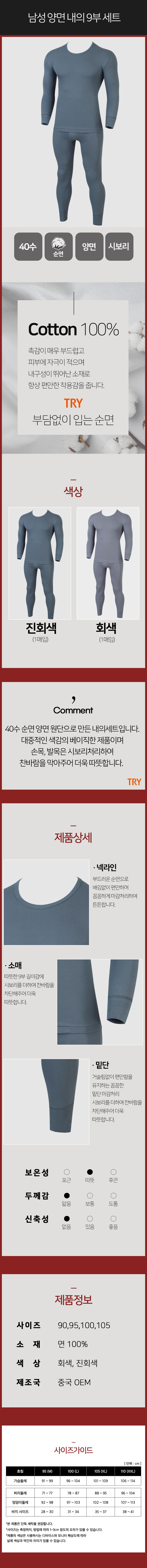 남자양면내복 순면 40수 면내의 보온내의 겨울 시보리 9부 세트