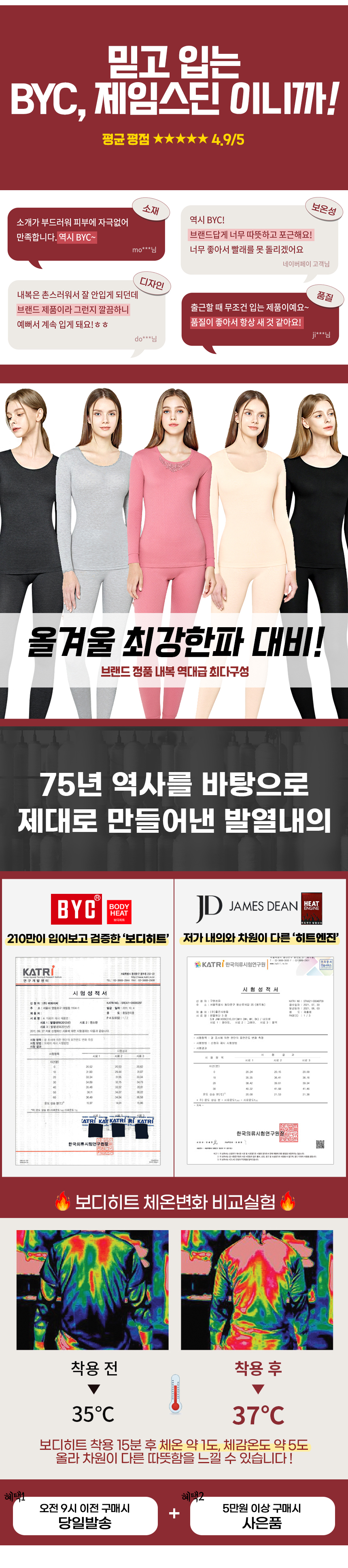 (16%쿠폰) BYC 보디히트 여성 내복 세트 발열 내의 기모 순면 모달 상의 바지 여자 겨울 빅사이즈 히트텍
