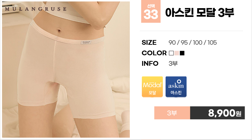 비너스 여성 속바지 2/3/5부 면 인견 레이온 기모 겨울 여자 학생 교복 Y존 커버 속치마 네모팬티 빅사이즈