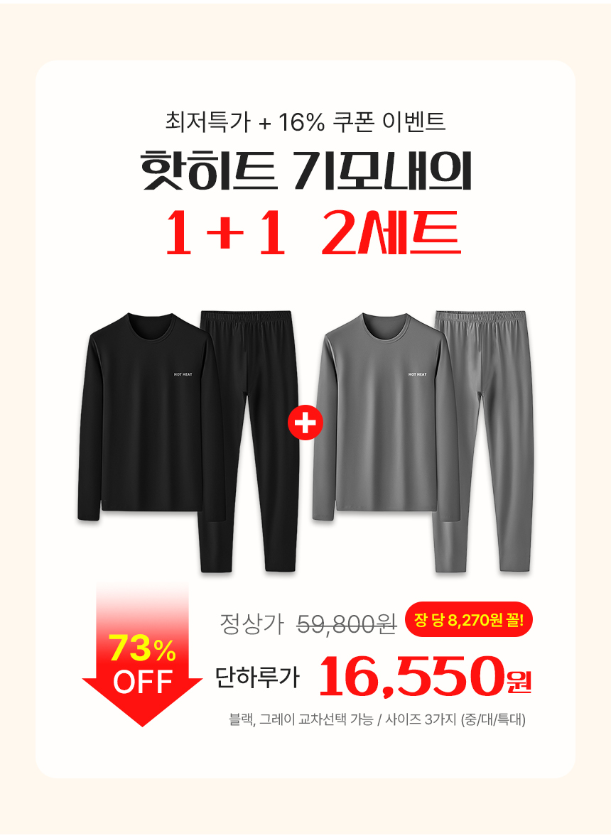 단하루+16%쿠폰) 핫히트 발열내의 상+하 세트 남녀공용 기모 히트텍 보온 내의 발열 내복 상하세트