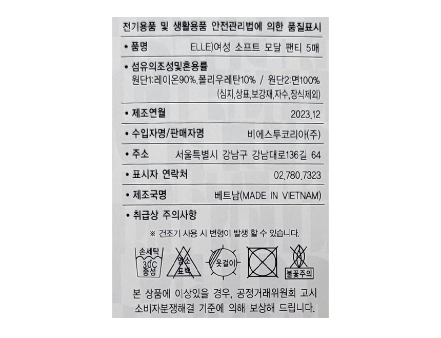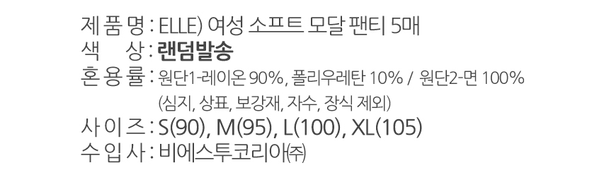 엘르 여성 소프트 모달 팬티 5매 언더웨어 노라인 코스트코 색상랜덤