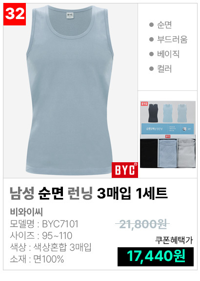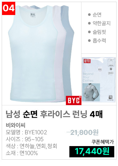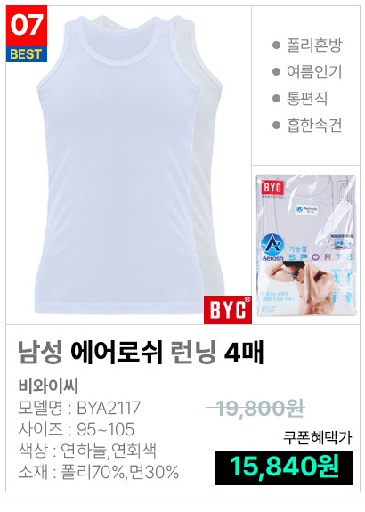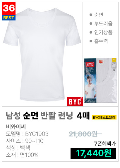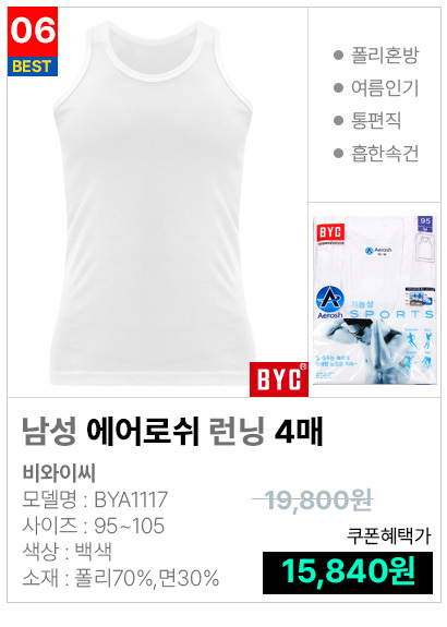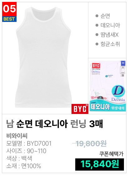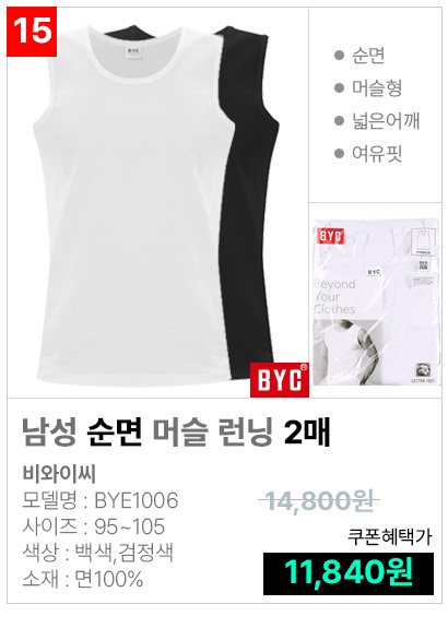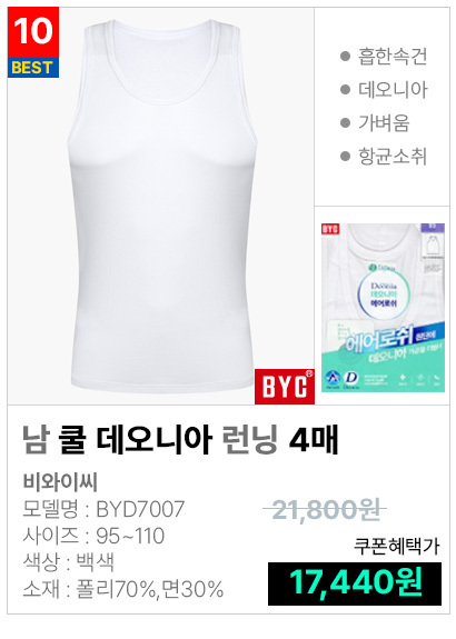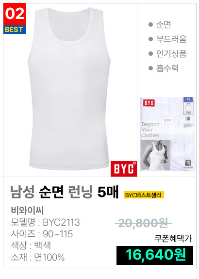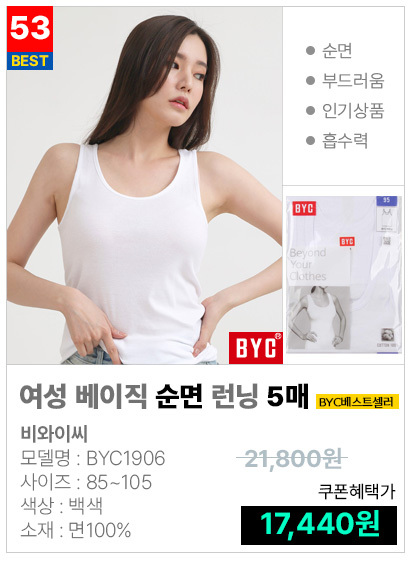 (15%쿠폰) BYC 런닝 세트 5매 쿨 여름 인견 남성 빅사이즈 여성 끈 나시 셔츠 순면 반팔 메리야스 110 큰