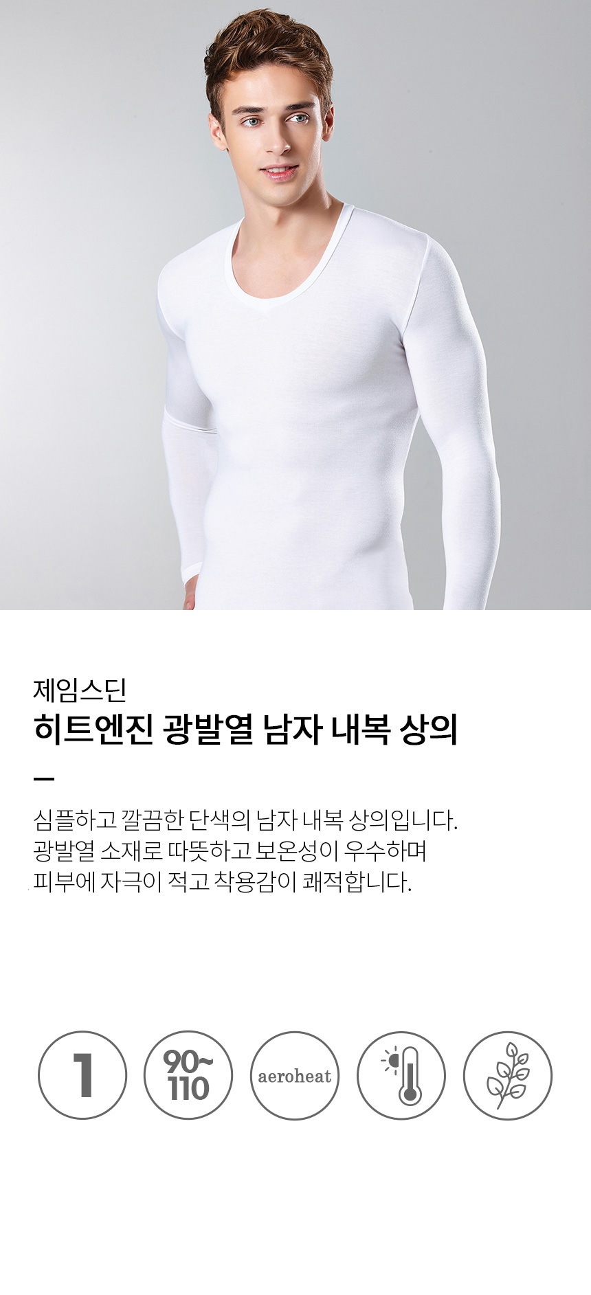 남자흰색내복 발열내복 백색 흰내의 겨울내복 상의