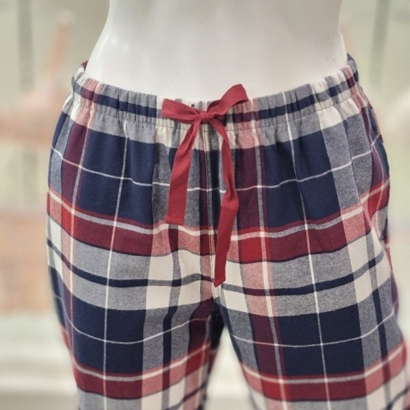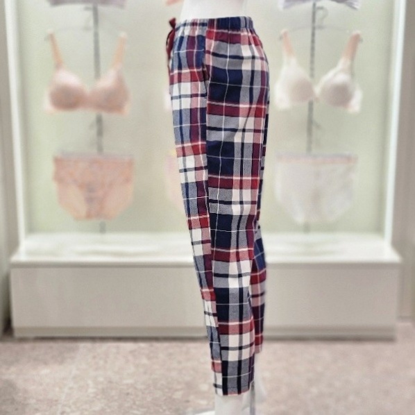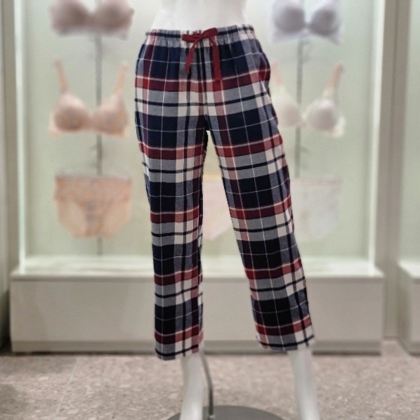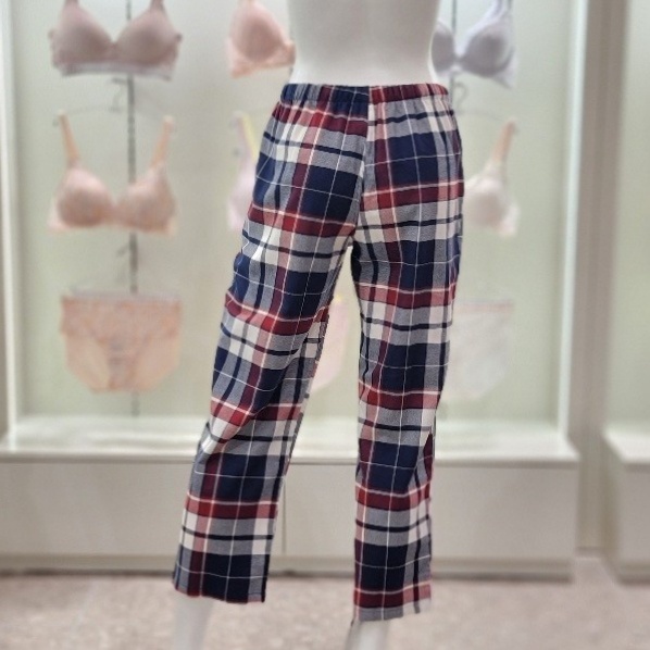 네이비 컬러에 텐더 체크 패턴이 더해져 캐주얼한 분위기의 여성 9부 파자마입니다.
