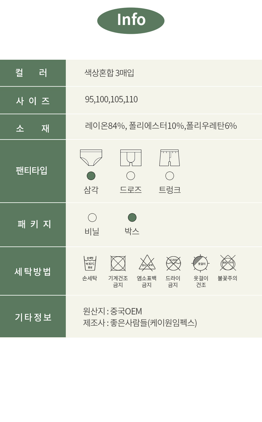 남자 브리프 삼각 팬티 3매 세트 JHMPZP11