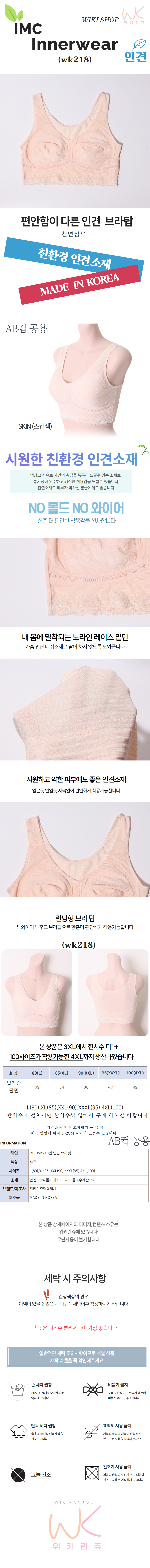 위키란쥬 IMC 시원한 인견 비스코스 노와이어 런닝형 편한 스포츠 브라 탑 인견 여름 속옷