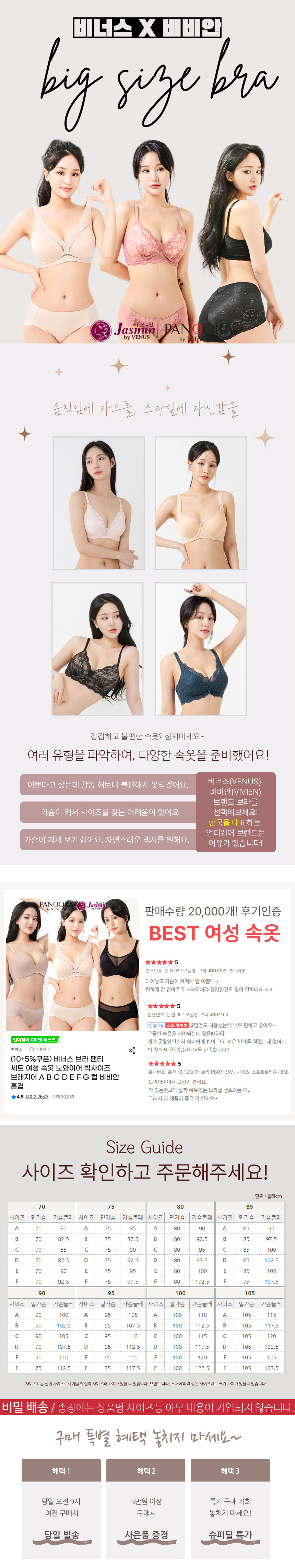 (15%쿠폰) 비너스 브라 팬티 세트 A ~ G 컵 여성 속옷 노와이어 빅사이즈 브래지어 B C D E F 비비안 홑겹