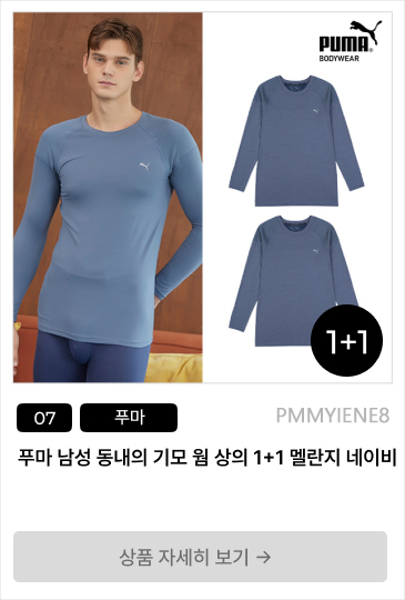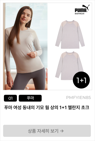 하프클럽/푸마 언더웨어 보온성 세련된 핏 기모 남녀 상의 1+1 세트
