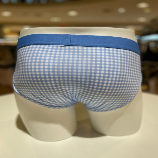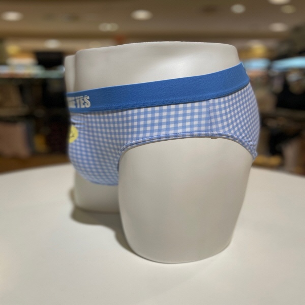 화사한 블루컬러 체크 패턴에 레몬스마일 캐릭터 원포인트로 포인트를 준 제품 입니다.기본스타일 남성용 삼각팬티로 신축성이 좋은 폴리스판 원단을 사용하여 피팅감이 안정적 입니다.