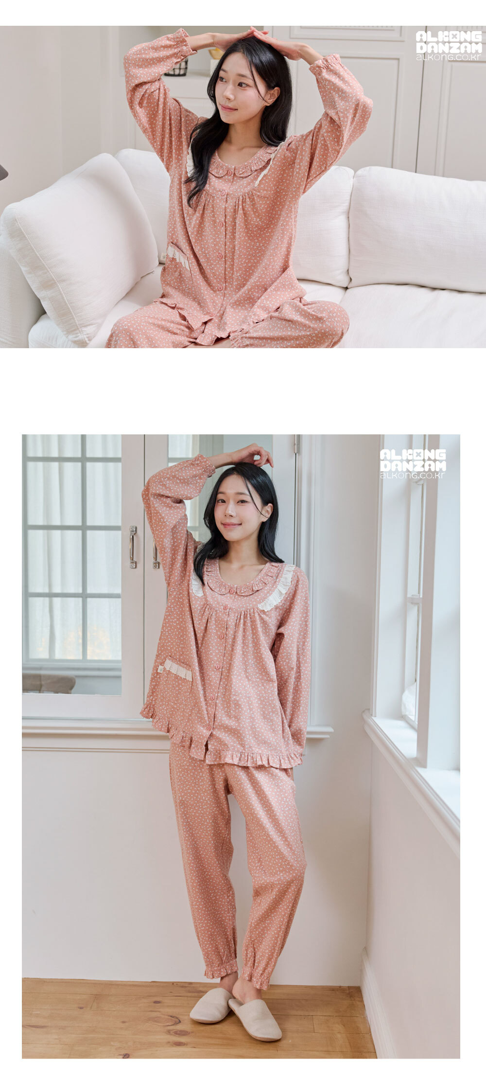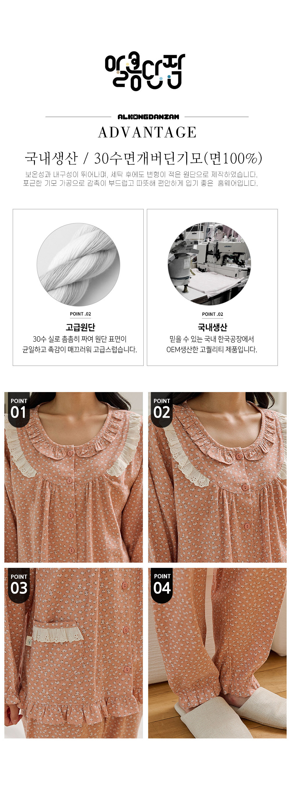 기모면100 여성파자마 긴팔 상하세트 빅사이즈 홈웨어 여자잠옷 엄마생일선물