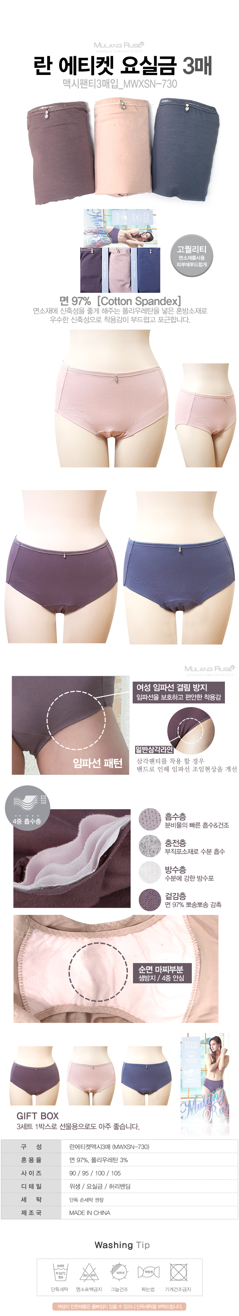 여성용 요실금팬티 3매