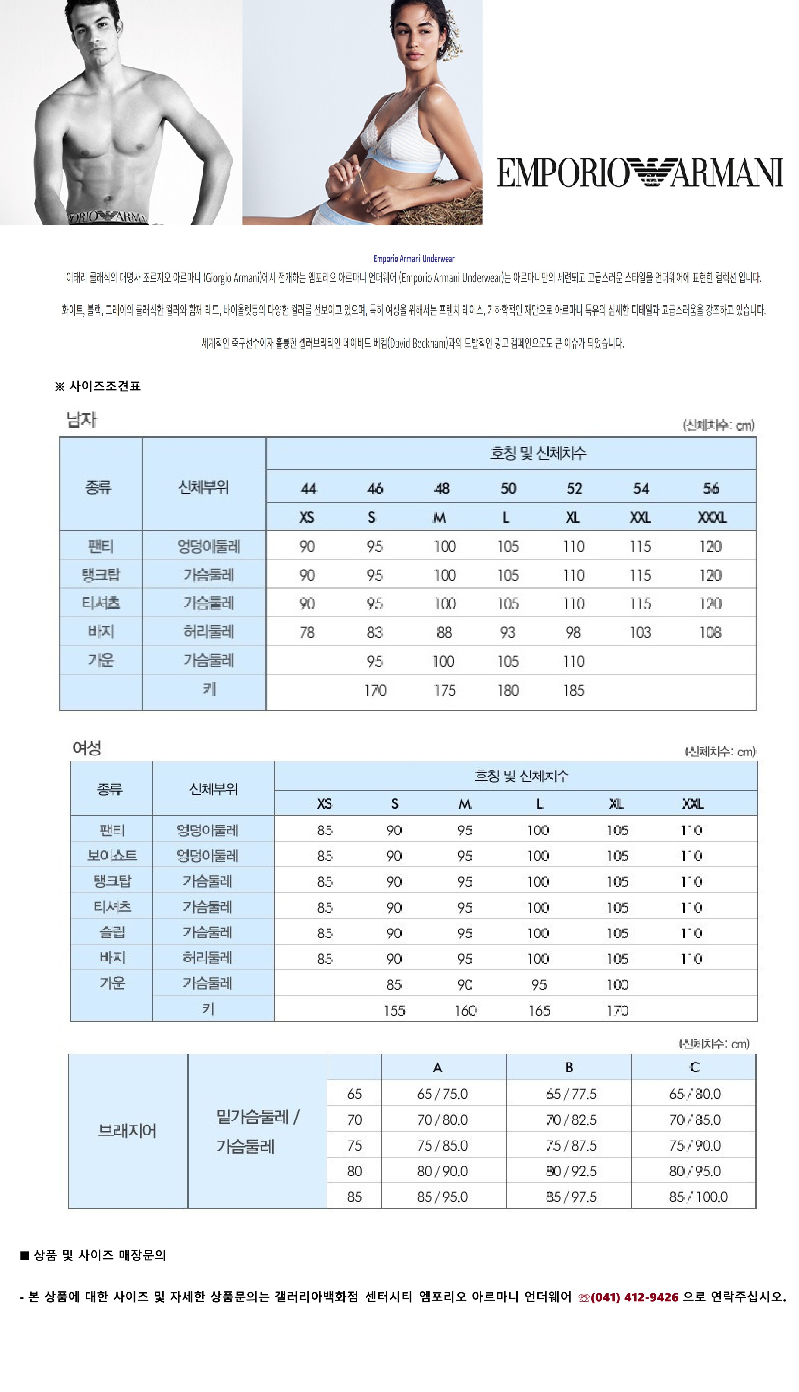 상품관련 상세문의처 : 갤러리아백화점(한화갤러리아㈜ 센터시티) EMPORIO ARMANI UNDERWEAR T.041-412-9426