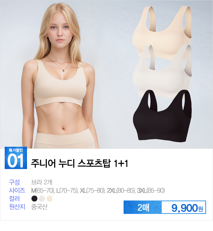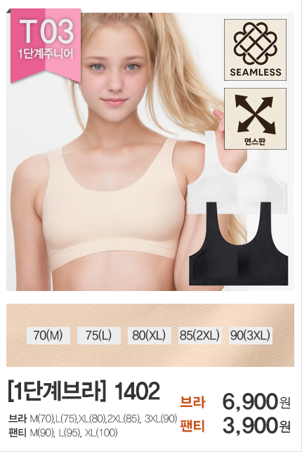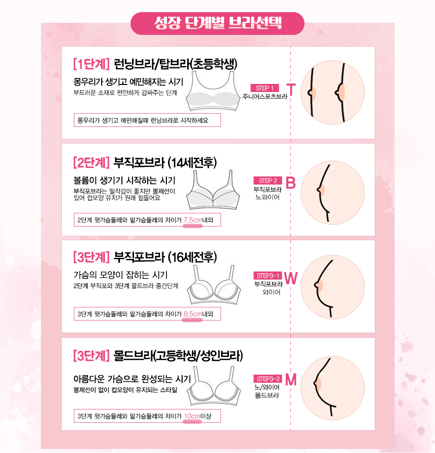 (1+1)(10%쿠폰) 주니어 스포츠브라 1 2 3 단계별 런닝브라 학생용 ~3XL 초 중 고 속옷세트