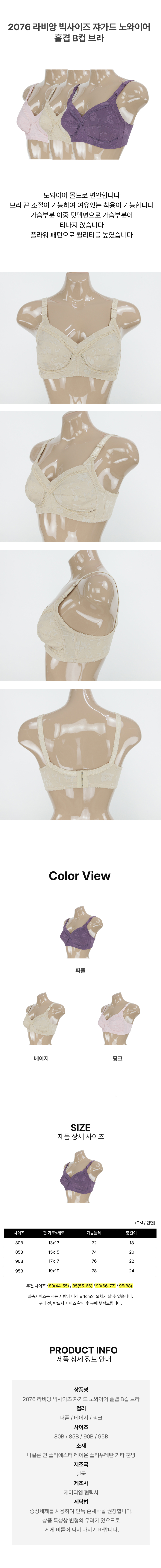 라비앙 2076 빅사이즈 노와이어 홑겹 B컵 브라