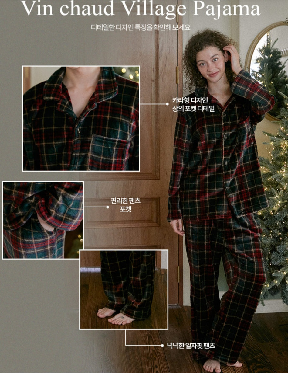 부드럽고 따뜻한 포켓 내장 남녀공용 수면잠옷세트입니다