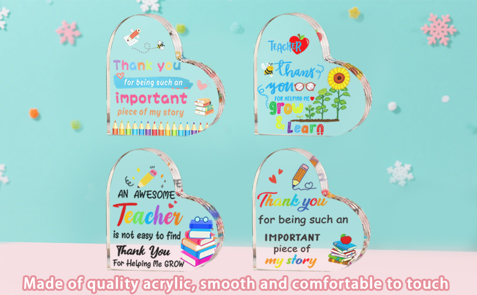 여성 남성을 위한 교사 감사 선물 하트 모양 아크릴 판 4x4 인치 연말 감사합니다 선물