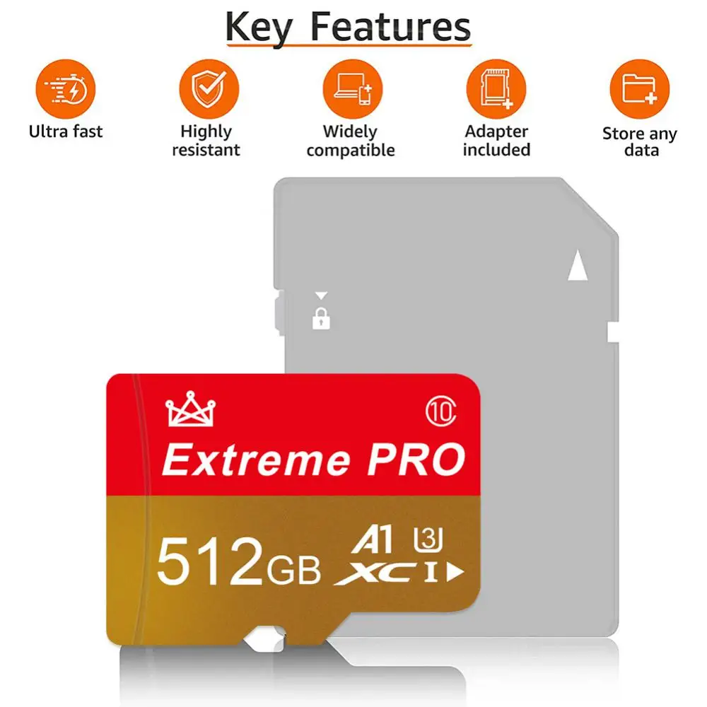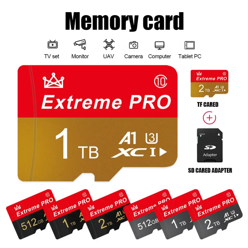 100% 정품 클래스 10 메모리 SD 카드 1TB 2TB 256GB 128GB 512GB A1 마이크로 TF SD 카드 UHS-1 플래시 카드 Samrtphone/PC SD 카드