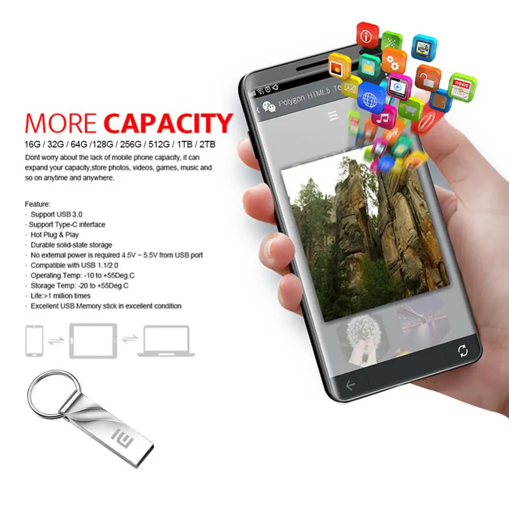Xiaomi 금속 2TB USB 디스크 플래시 드라이브 USB 3.0 고속 파일 전송 16TB 8TB 초대용량 방수 기계 스타일