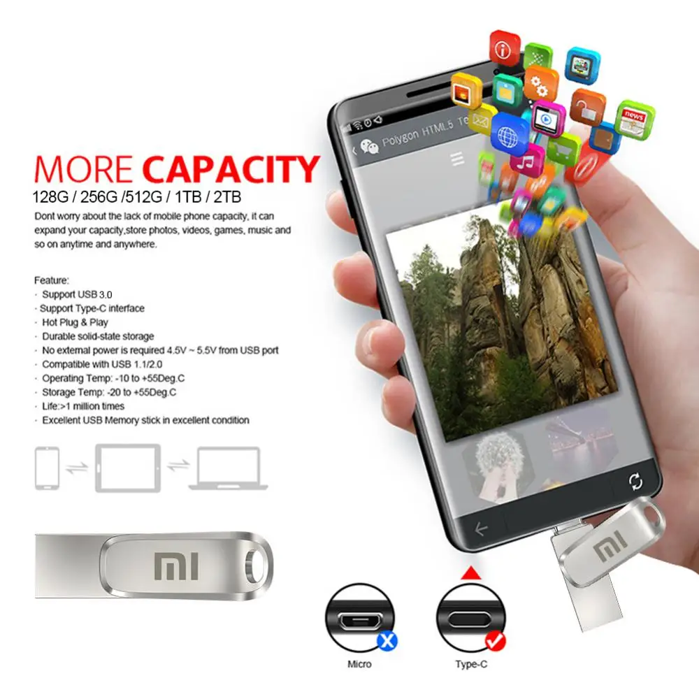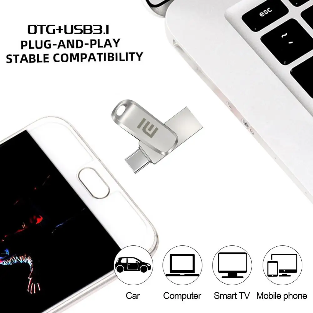 usb메모리 OTG 뚜껑있는 샤오미 TYPE-C USB 플래시 드라이브 노트북 PC용 C 스틱 메모리 카드 2TB USB3.0
