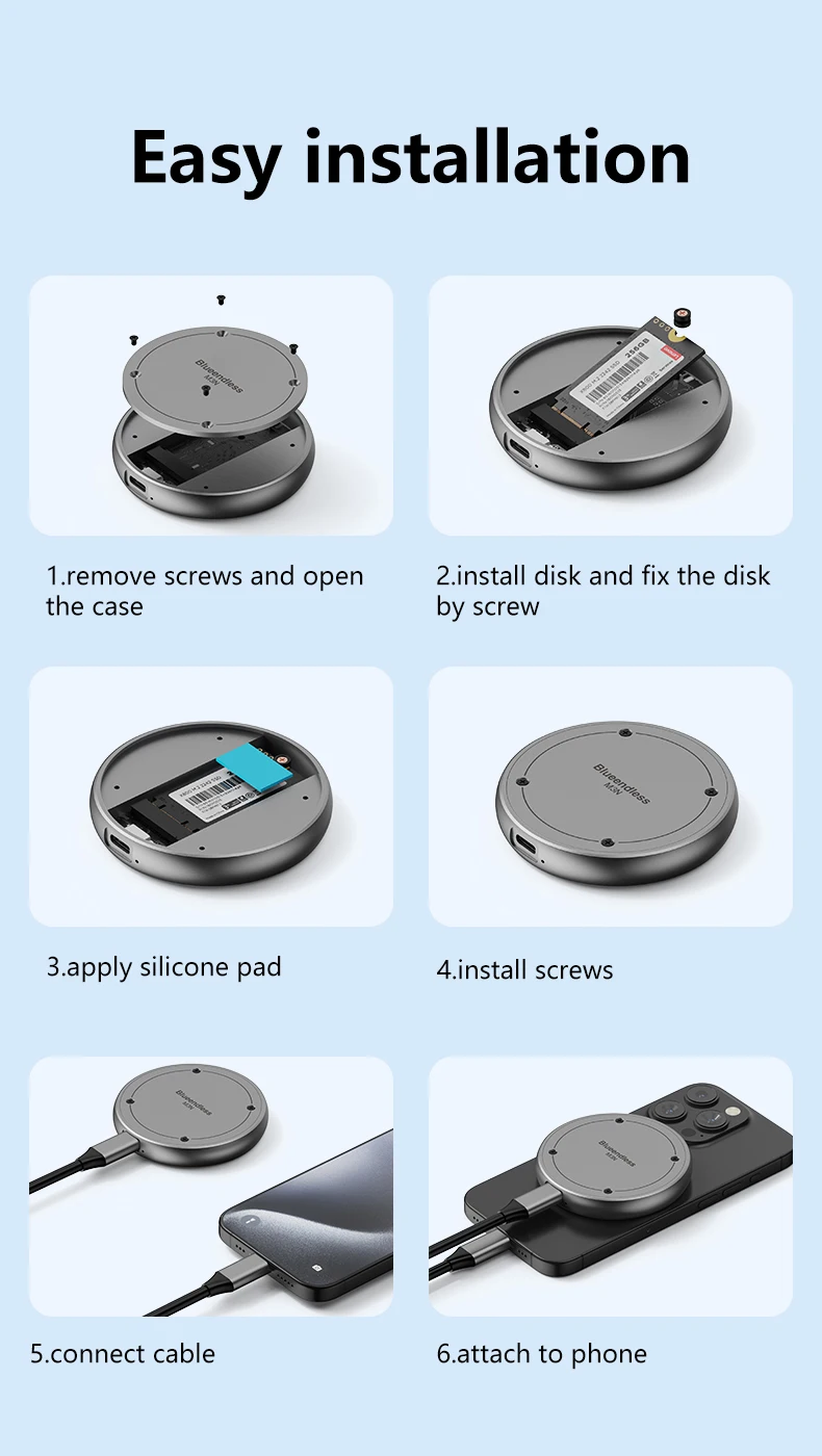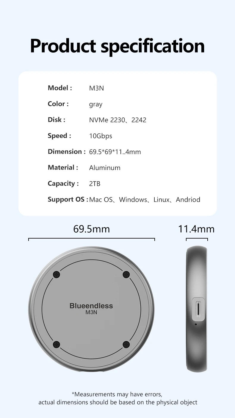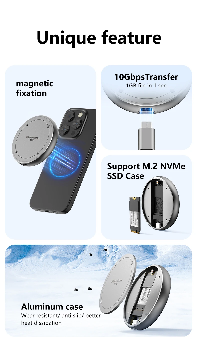 nvme 외장 케이스 M.2 마그네틱 하드 디스크 박스 솔리드 스테이트 2230/2242 휴대폰 태블릿 C 타입 모바일