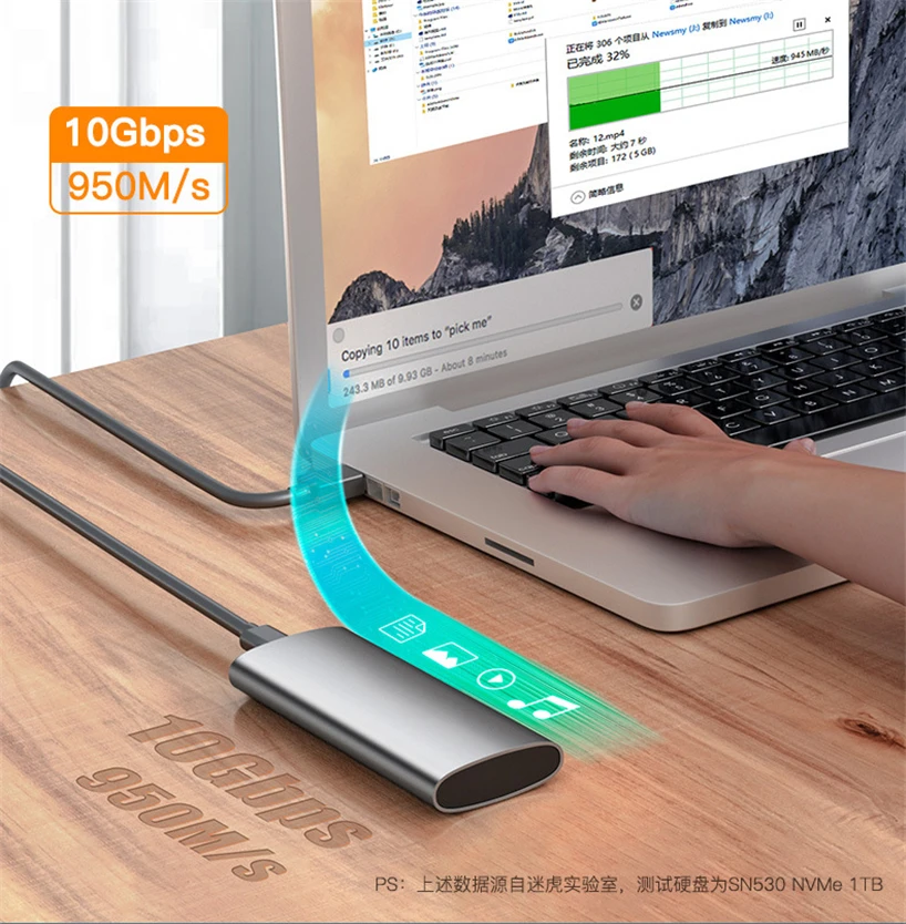 6. 듀얼 프로토콜은 Type-C에서 Type-A (5Gbps), Type-C에서 Type-C (10Gbps) 의 두 종류의 케이블을 사용합니다.