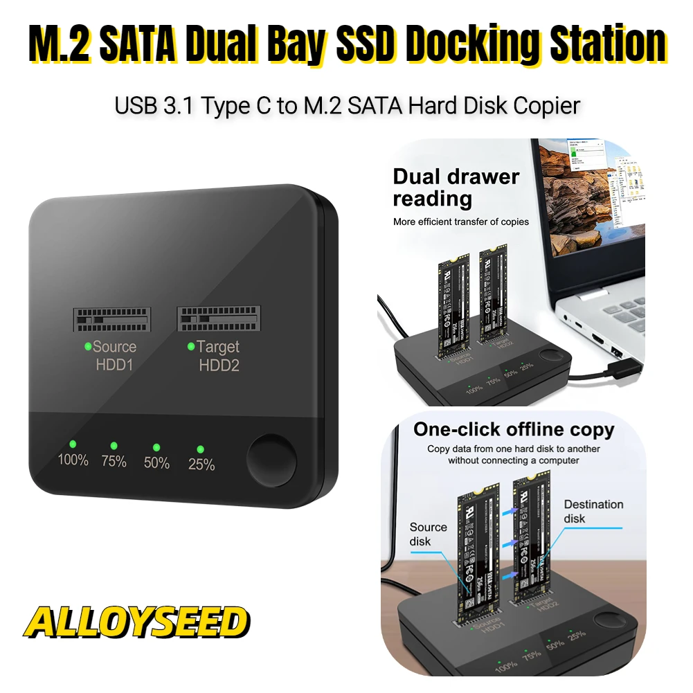 하드 디스크 복사기 USB 3 1 C타입 to M 2 SATA 듀얼 베이 SSD 인클로저 M2 HDD SSD 리더용 외장 하드 드라