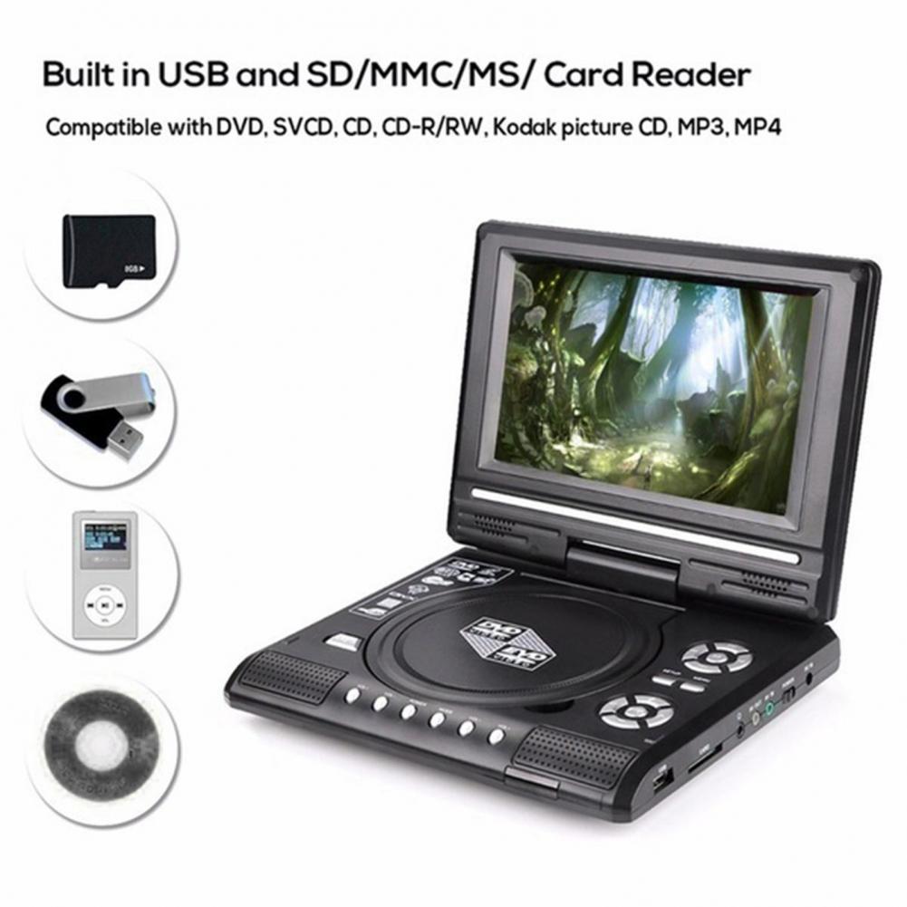 DVD 충전식 USB 포트 180 도 회전 LCD 와이드 스크린 가정용 휴대용 EVD 비디오 7 인치 8 인치