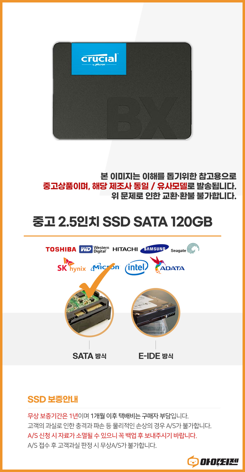 마이크론 SSD BX500 120GB 노트북 데스크탑 2.5인치 내장 하드디스크