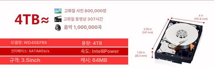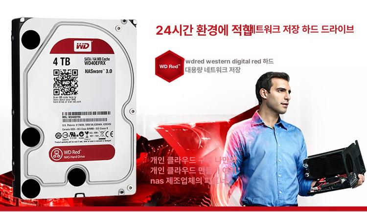wd 4t 하드디스크 나스 wd40efrx 5400rpm 택배 외장하드 부품블랙 HDD