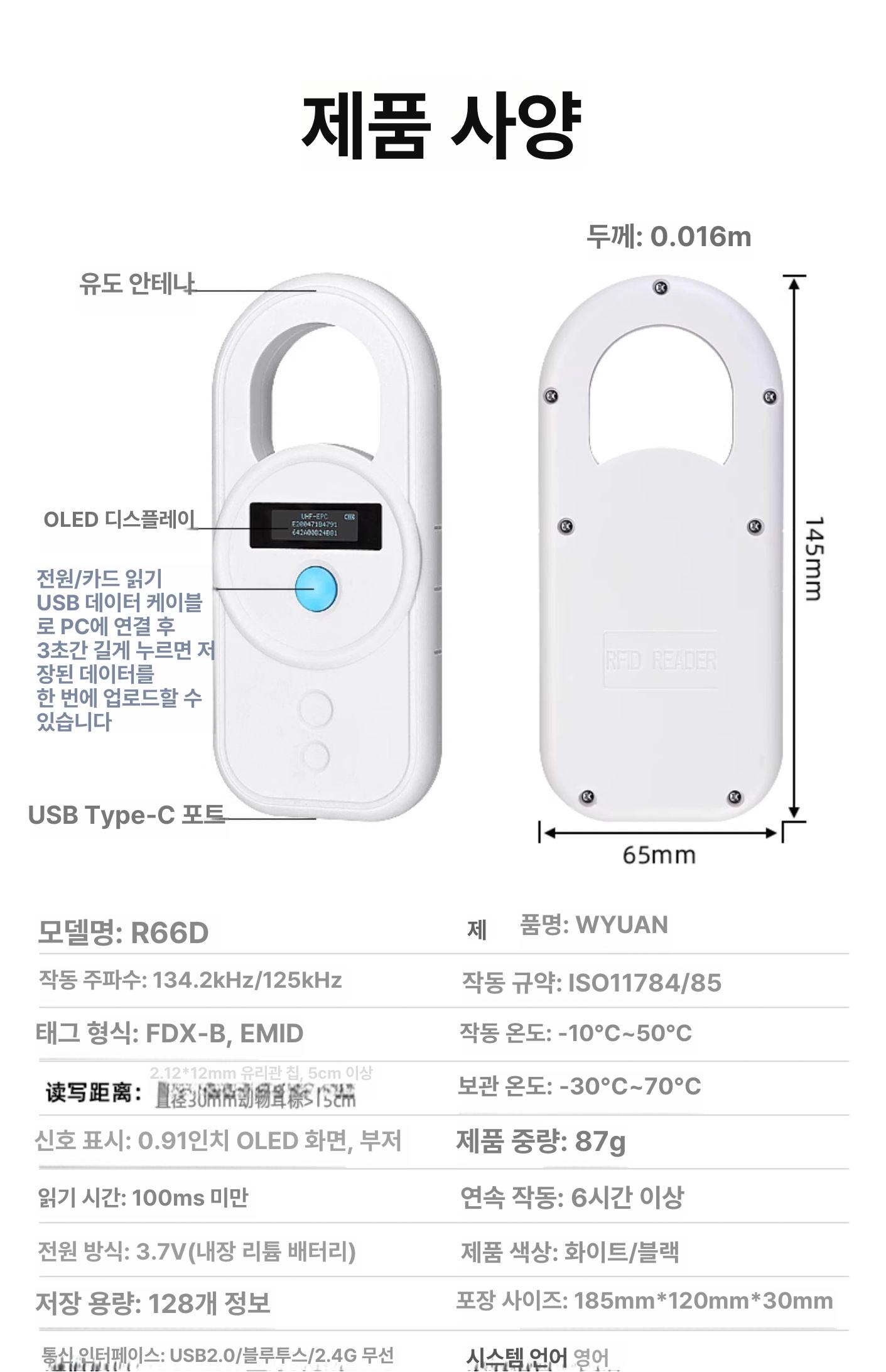 마이크로칩 리더기 반려견 스캐너 동물 강아지 식별기 고양이 마이크로칩리더기 칩 동물칩
