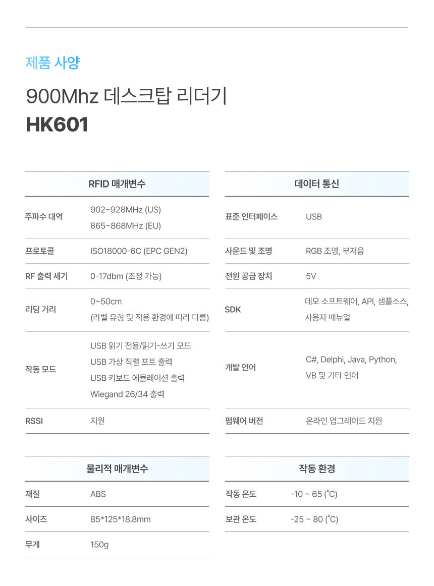 RFID 리더기 USB 900Mhz 읽기 쓰기 HK601