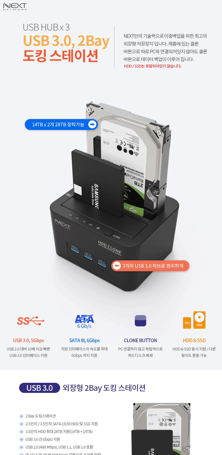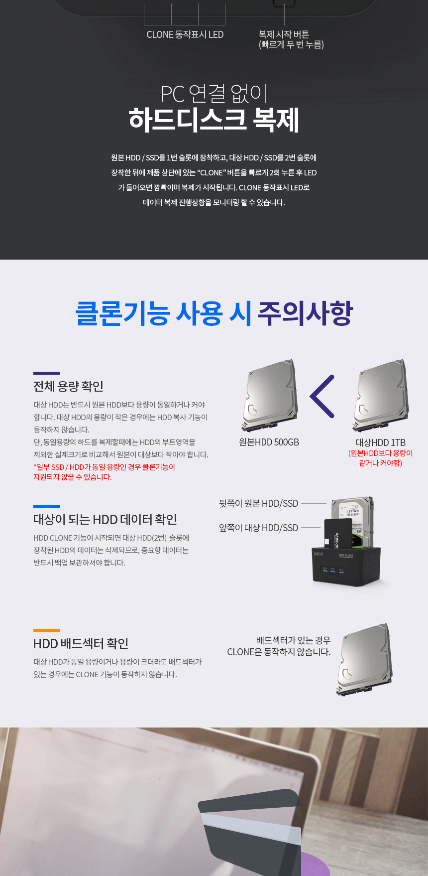 데스크탑 하드 도킹스테이션 2베이 복제 클론 백업 독
