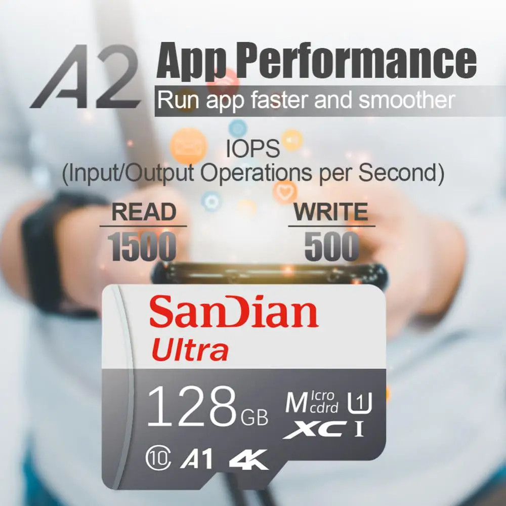 3. 초고속: 읽기 속도 70-100 mb/s. 쓰기 속도는 15-30 mb/s입니다 (메모리 크기에 따라 다름). 최고의 스마트 폰 경험을위한 UHS, U3, 클래스 10 및 A2 속도 등급