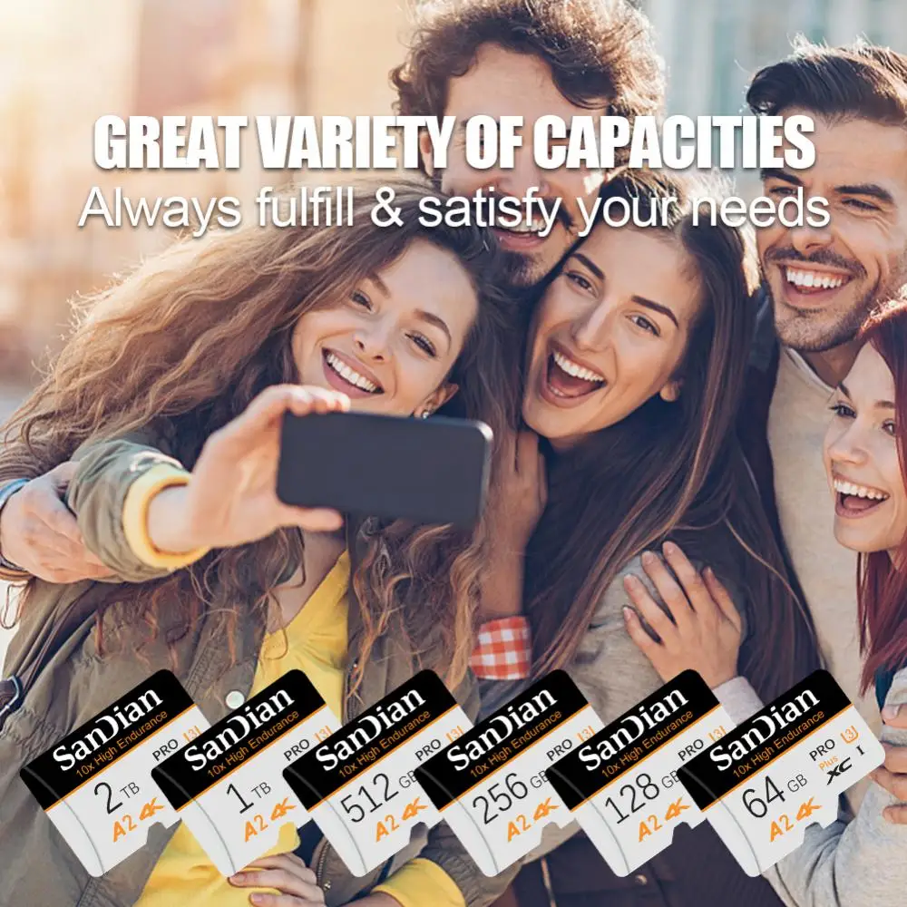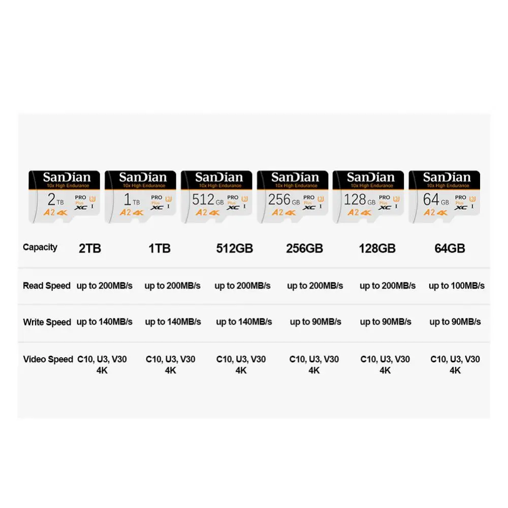 3. 초고속: 읽기 속도 70-100 mb/s. 쓰기 속도는 15-30 mb/s입니다 (메모리 크기에 따라 다름). 최고의 스마트 폰 경험을위한 UHS, U3, 클래스 10 및 A2 속도 등급