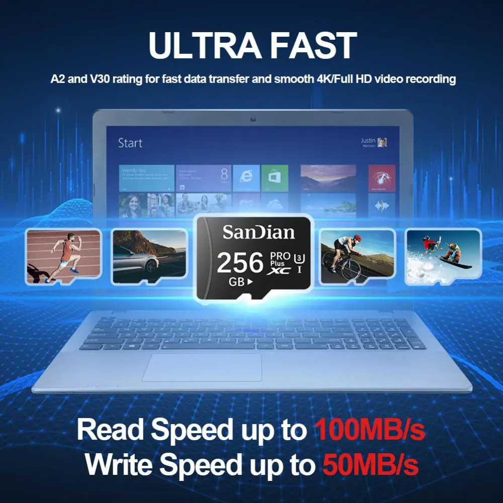 3. 초고속: 읽기 속도 70-100 mb/s. 쓰기 속도는 15-30 mb/s입니다 (메모리 크기에 따라 다름). 최고의 스마트 폰 경험을위한 UHS, U3, 클래스 10 및 A2 속도 등급