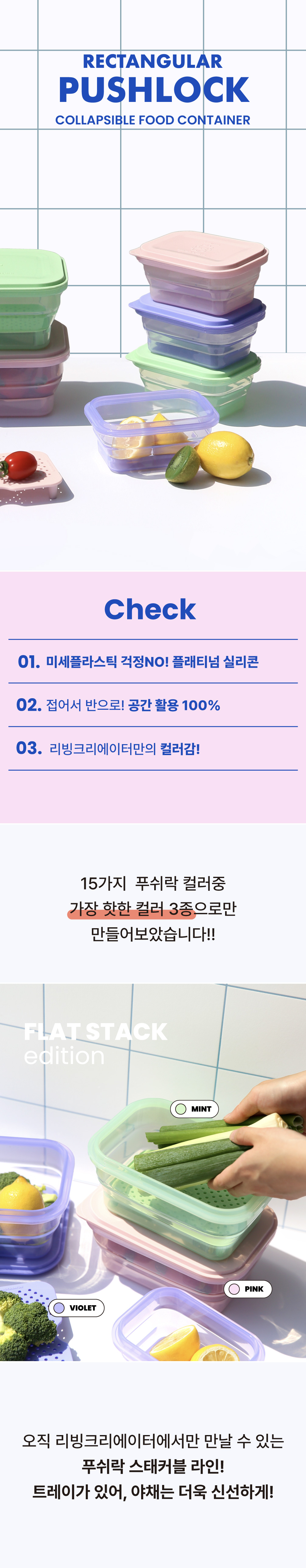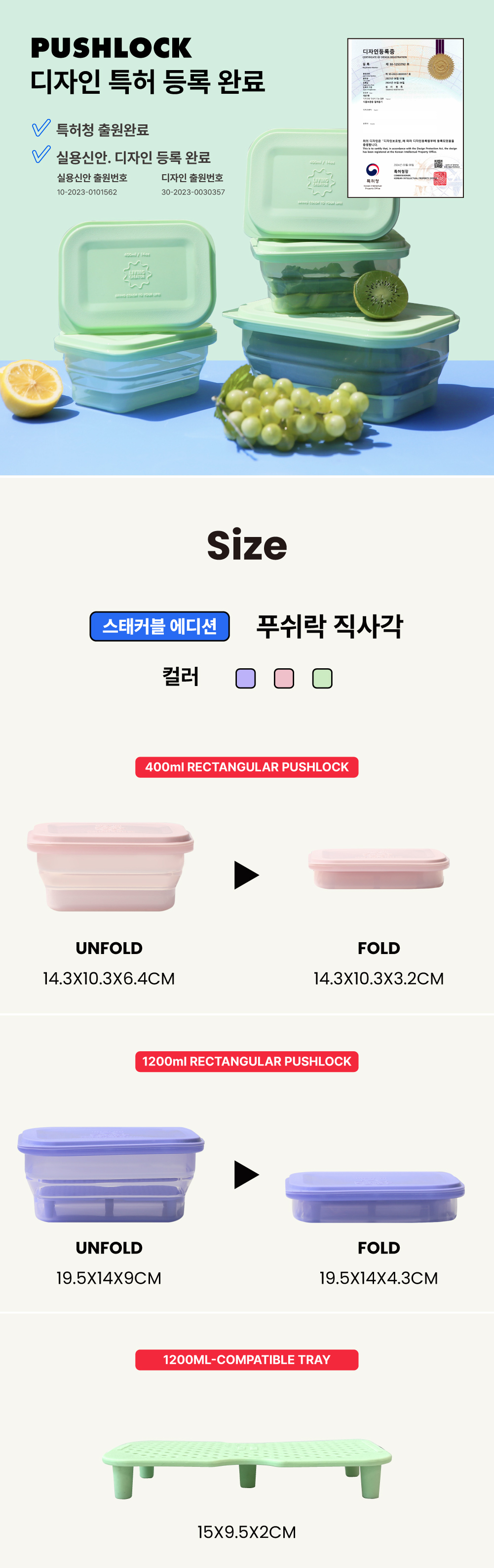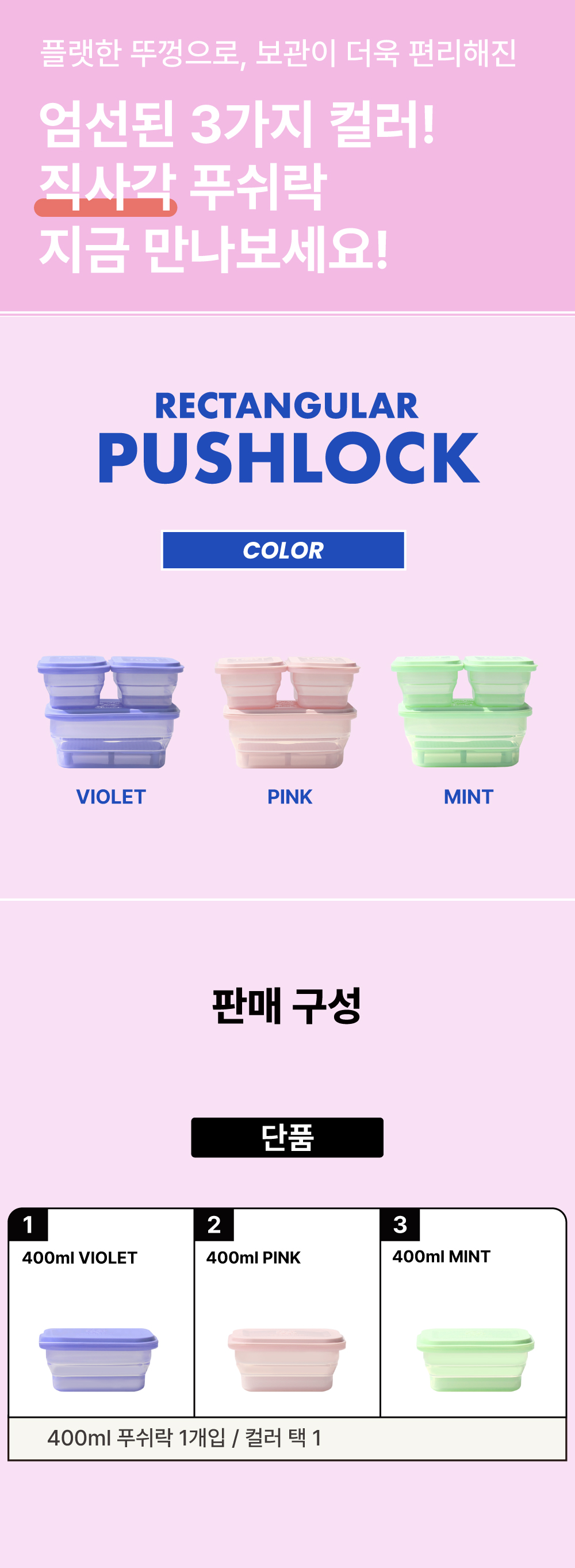 (리빙크리에이터)플랫스택 에디션 직사각 푸쉬락 400ml