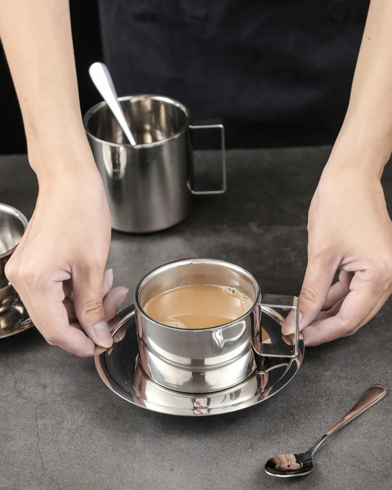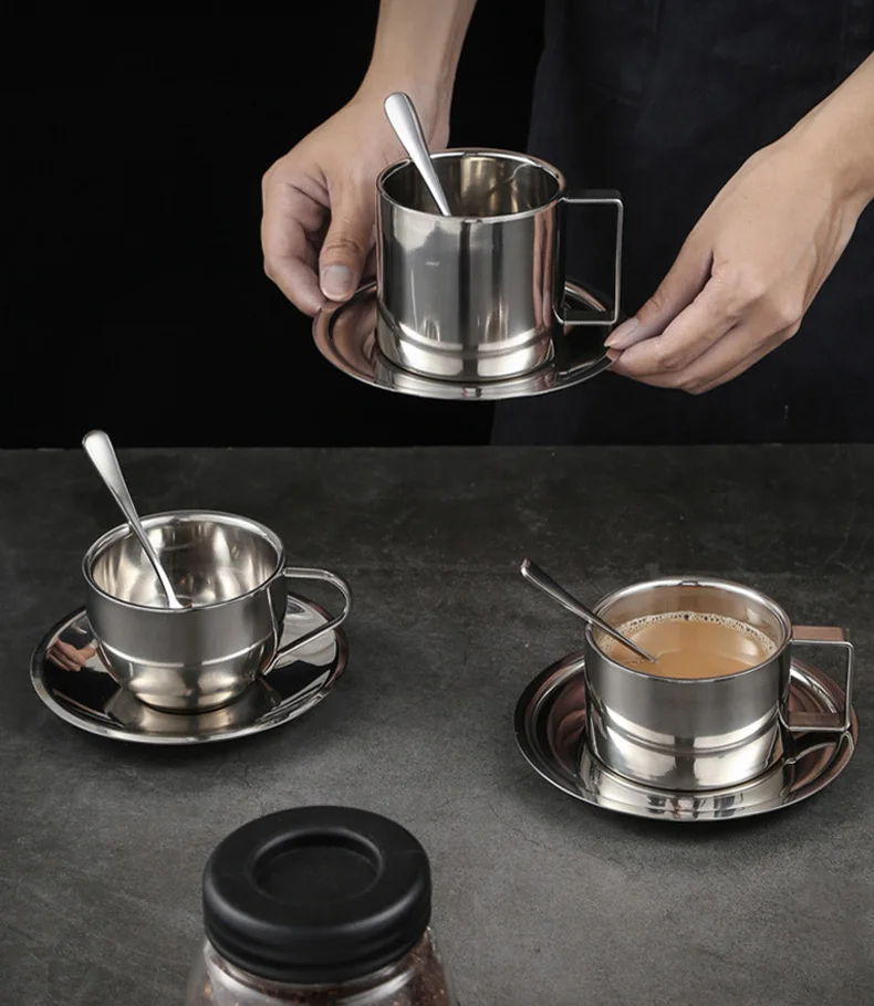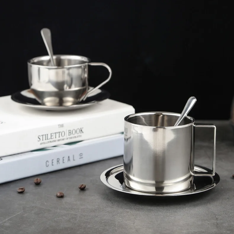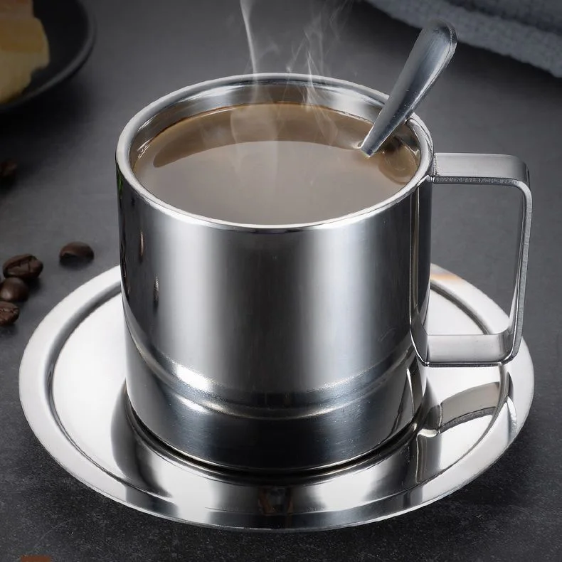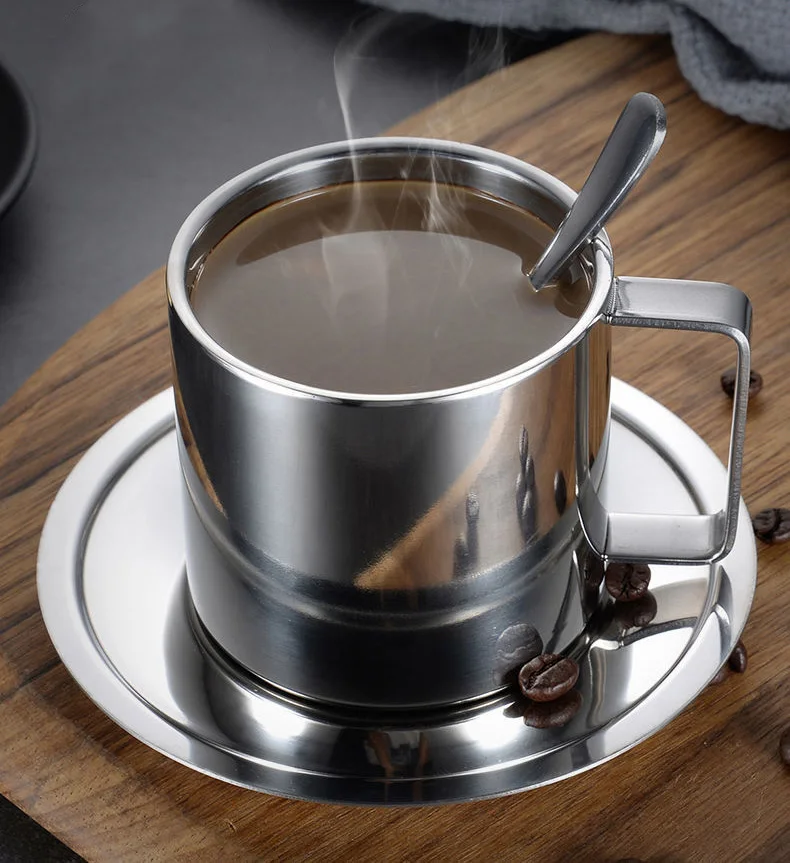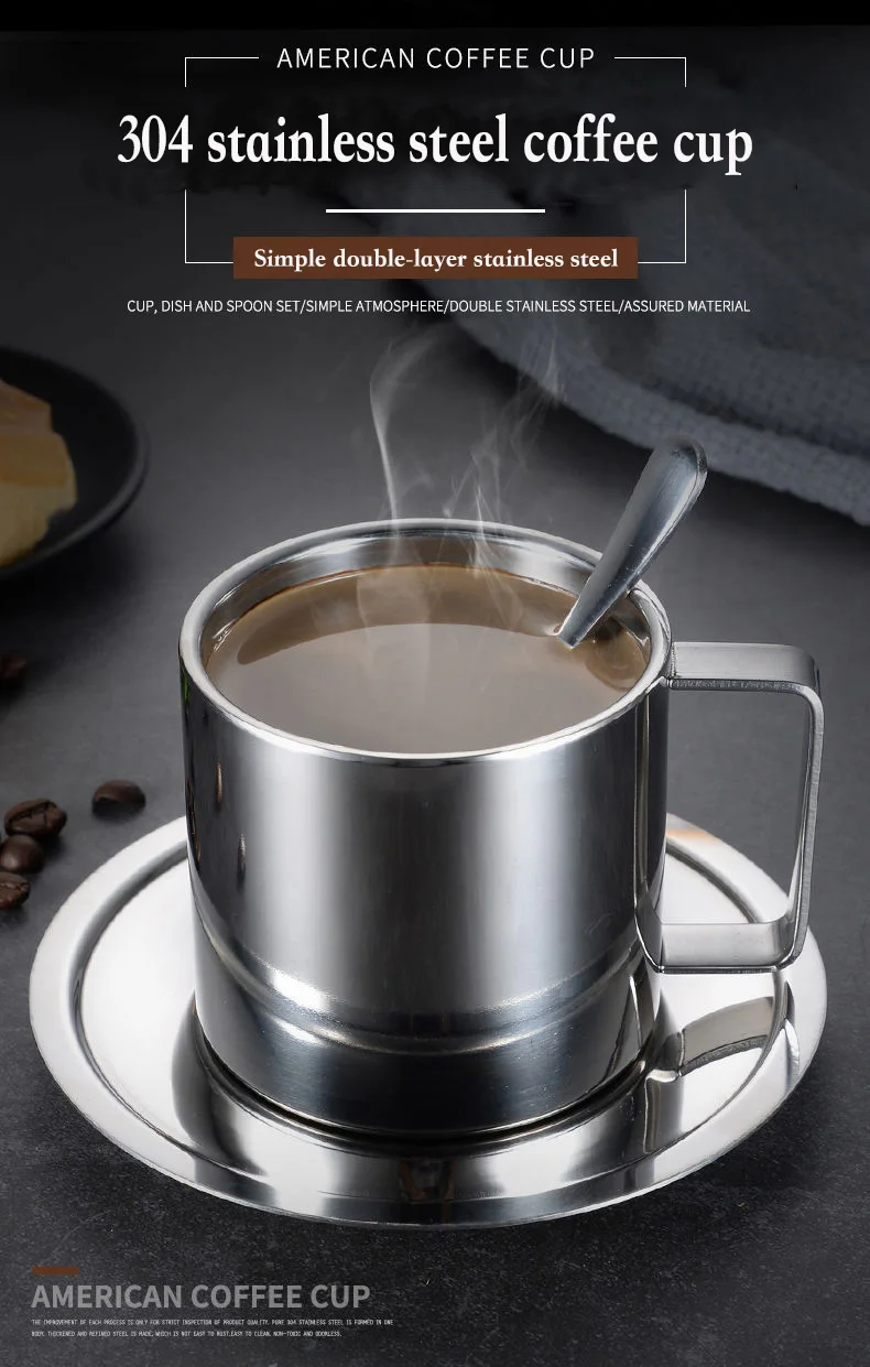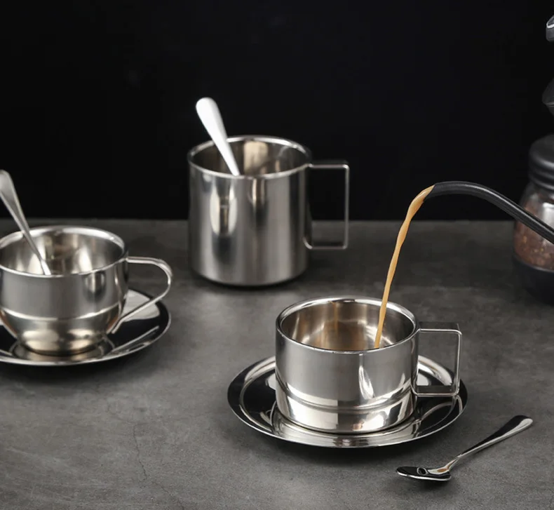 2. 이중 벽 단열 디자인: 이 스테인레스 스틸 커피 머그잔 세트는 이중 벽 디자인으로