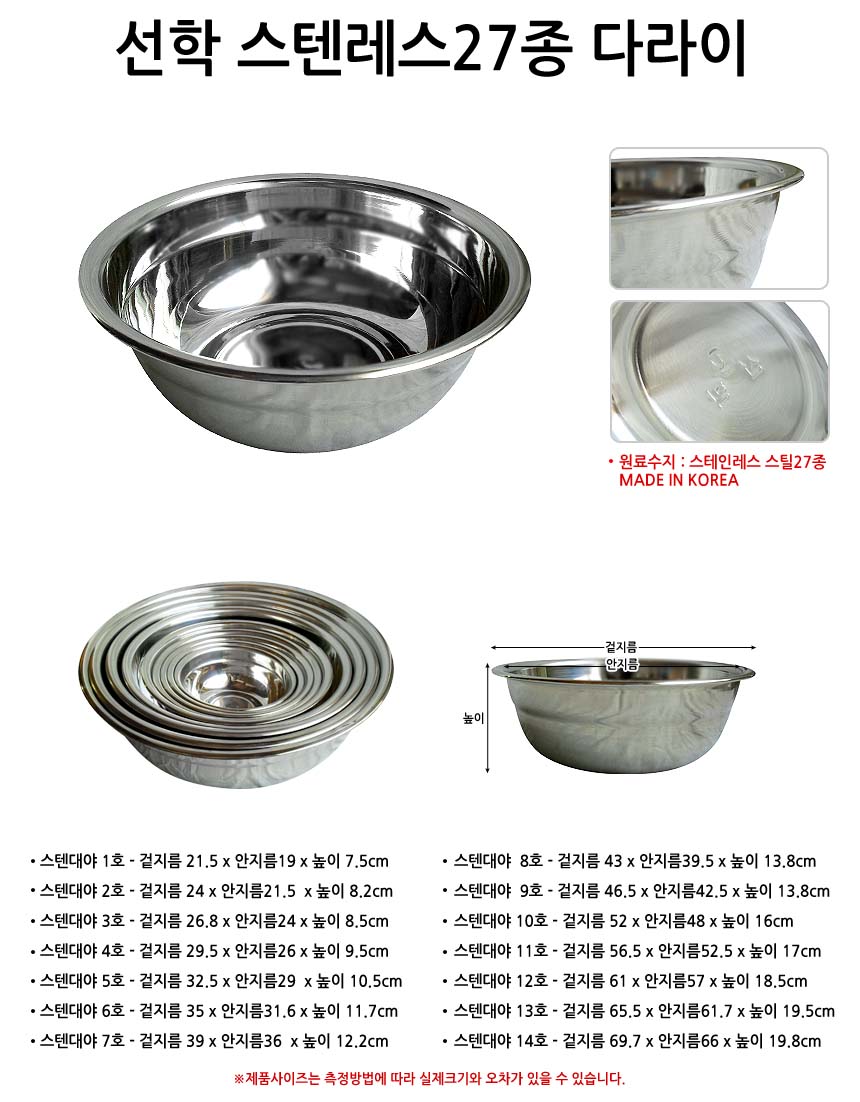 선학 스텐 다라이 (10호) 스텐27종 양푼이 믹싱볼